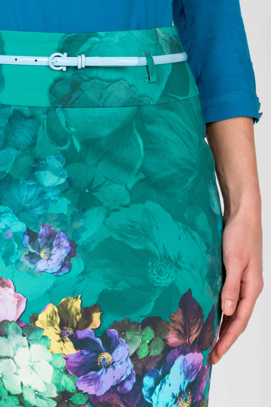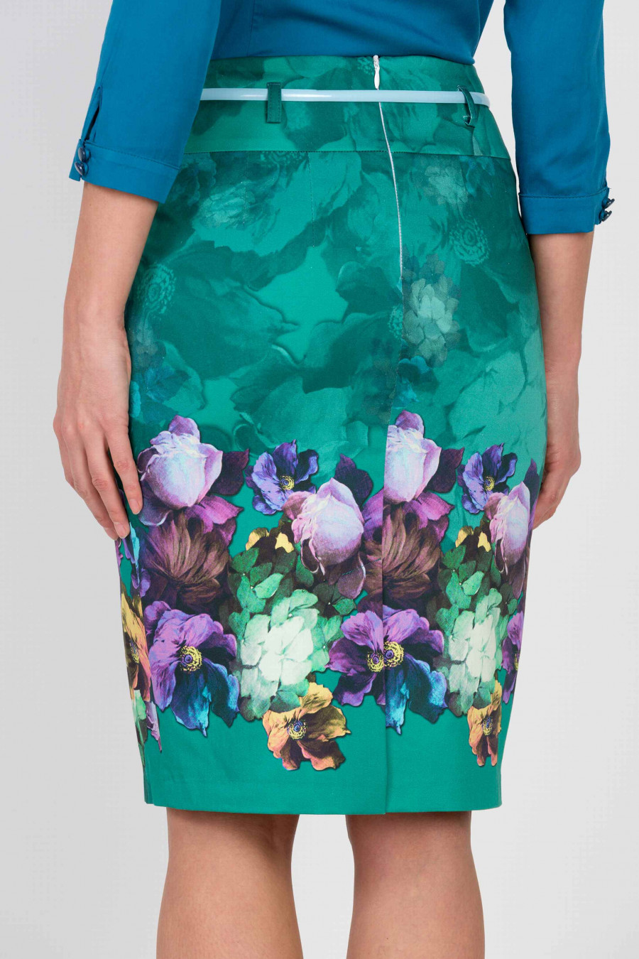 Классическая сочно-зеленая юбка-карандаш из ткани средней плотности с эффектом крепа и легкой эластичностью. Есть легкая подкладка, юбка не просвечивает. Сзади застежка-молния, есть шлица. Обладательница такой юбки никогда не останется незамеченной, благодаря оригинальному цветочному принту. Ремешок продается отдельно. Образ на фотографии дополняет блузка b 2115/magdalena. Рост фотомодели 170 см. Длина: 59 см.