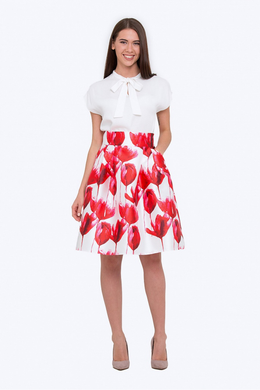 Расклешенная юбка с мягкими складками. По бокам удобные кармашки. Без подкладки. Очень комфортная модель, хорошо подойдет для повседневной носки. Рост фотомодели 172 см. Длина градируется от размера к размеру.