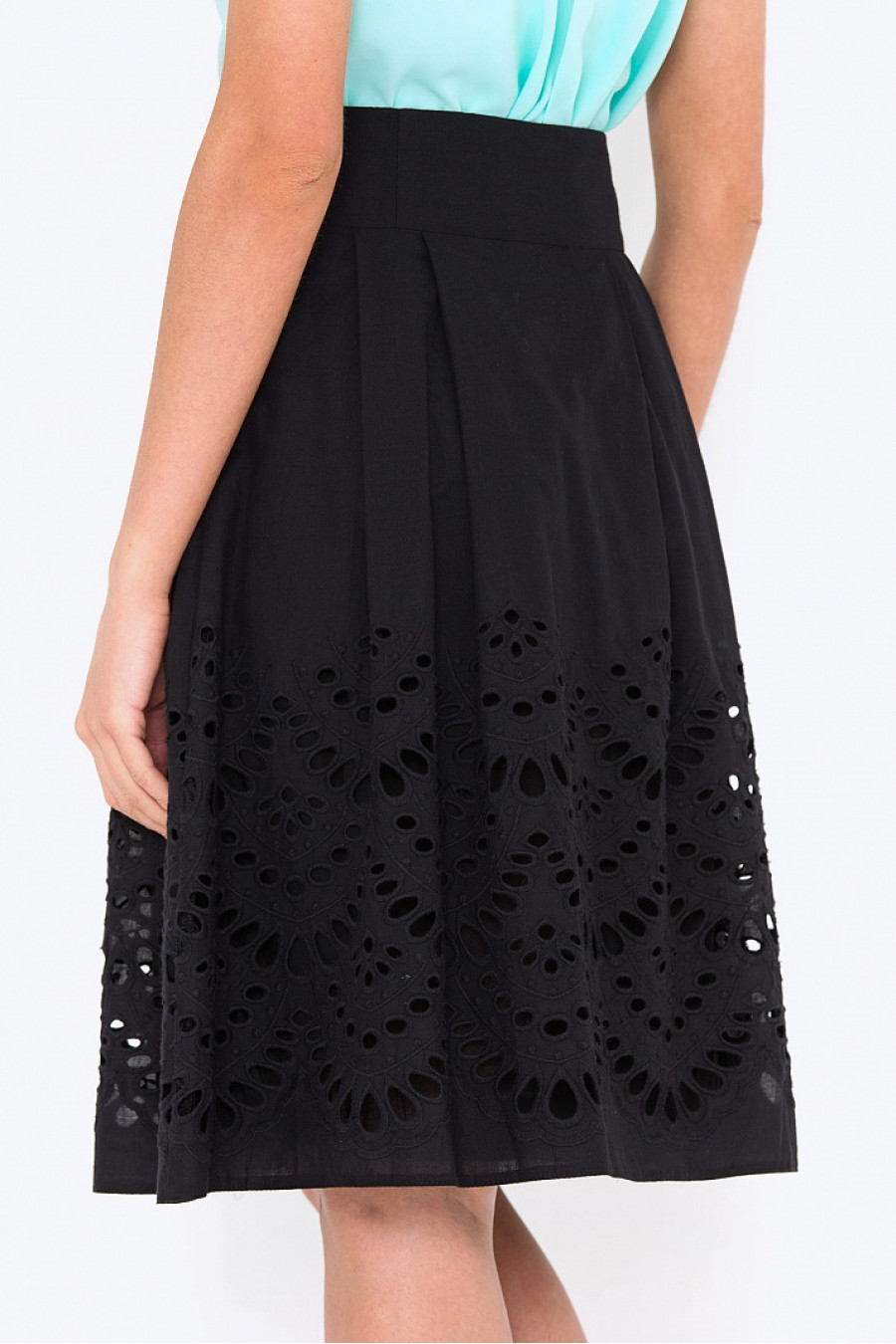 Расклешенная юбка с мягкими складками. Ткань с перфорированной вышивкой. По бокам удобные кармашки. Есть подкладка из хлопка.Очень комфортная модель, хорошо подойдет для повседневной носки,с нарядной блузкой подойдет для выхода в свет. Рост фотомодели 172 см. Длина градируется от размера к размеру.