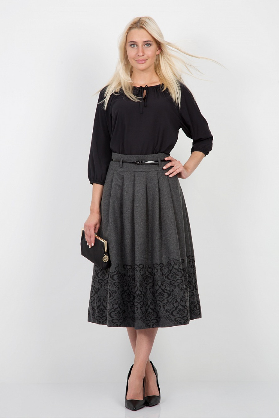 Длина юбки: 75 см., Рост модели 170 см. С подкладом. Ремень не входит в комплект.