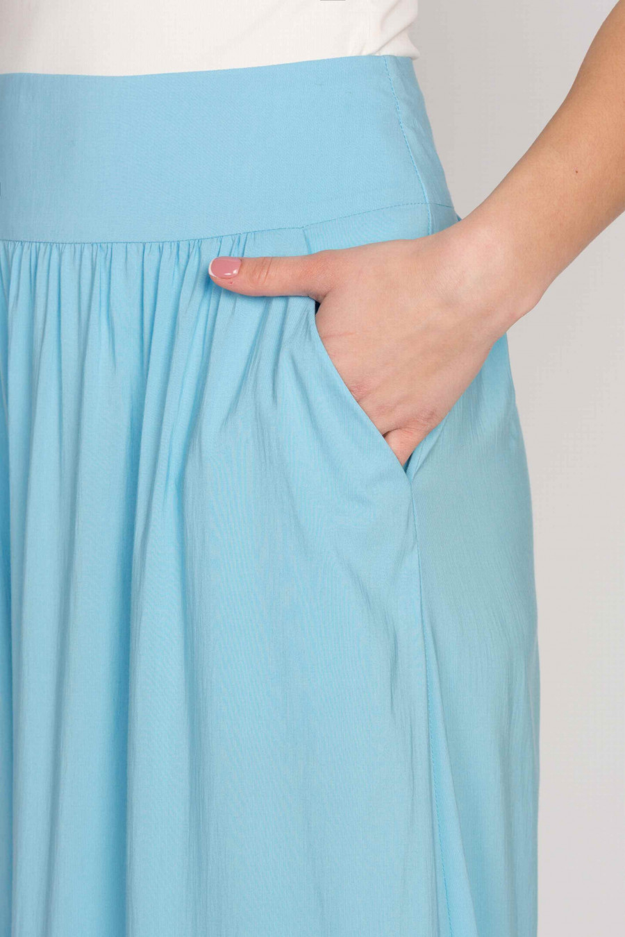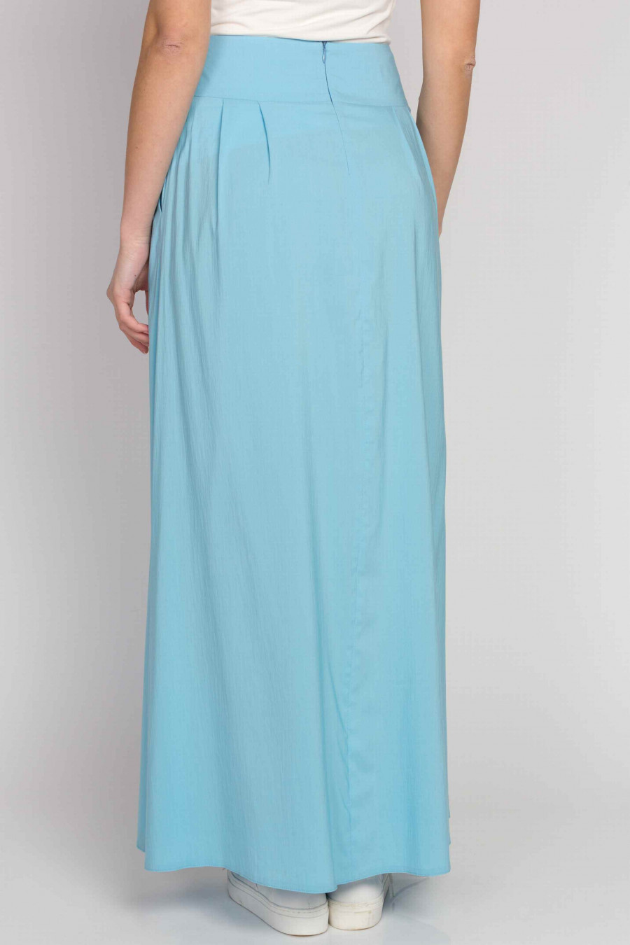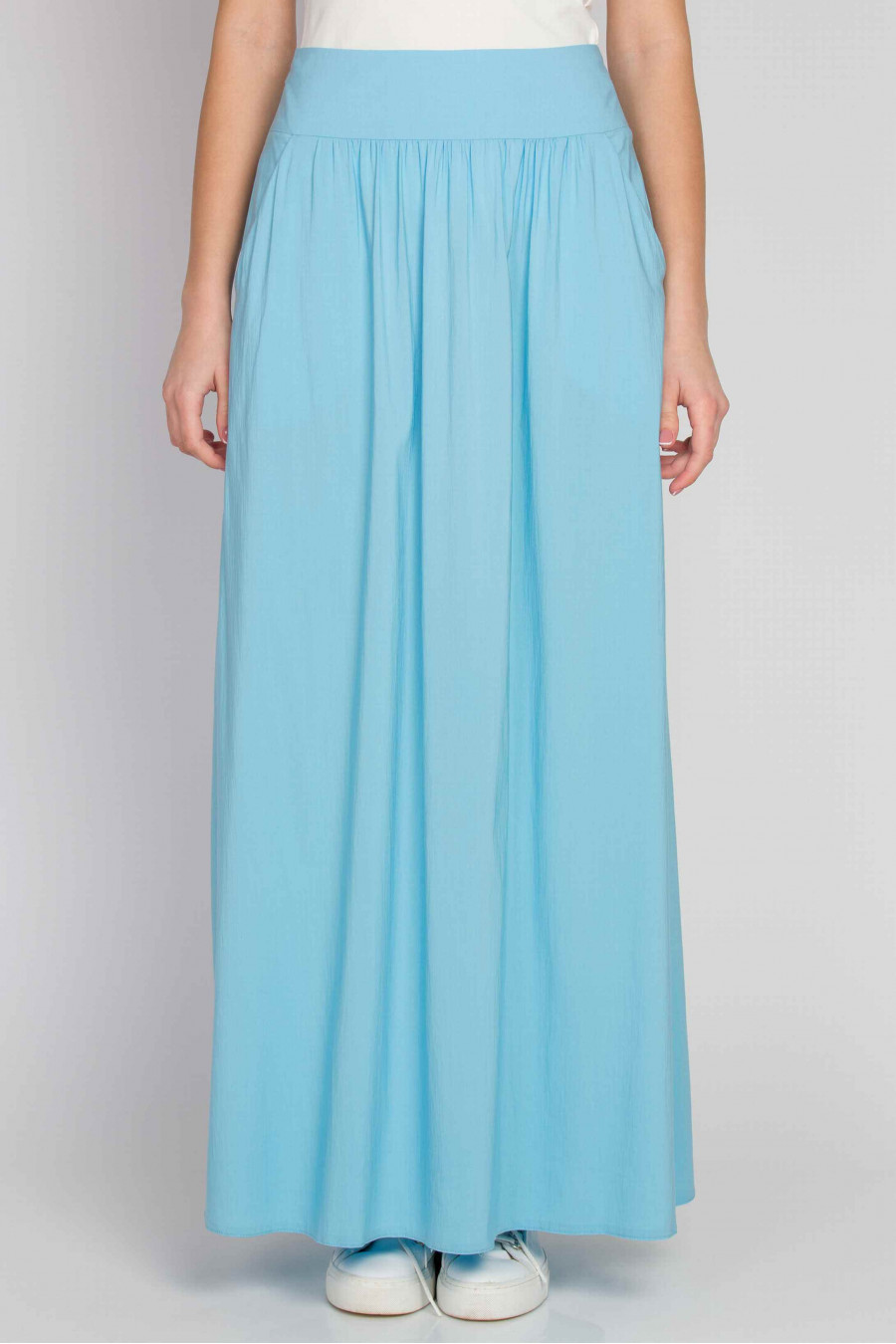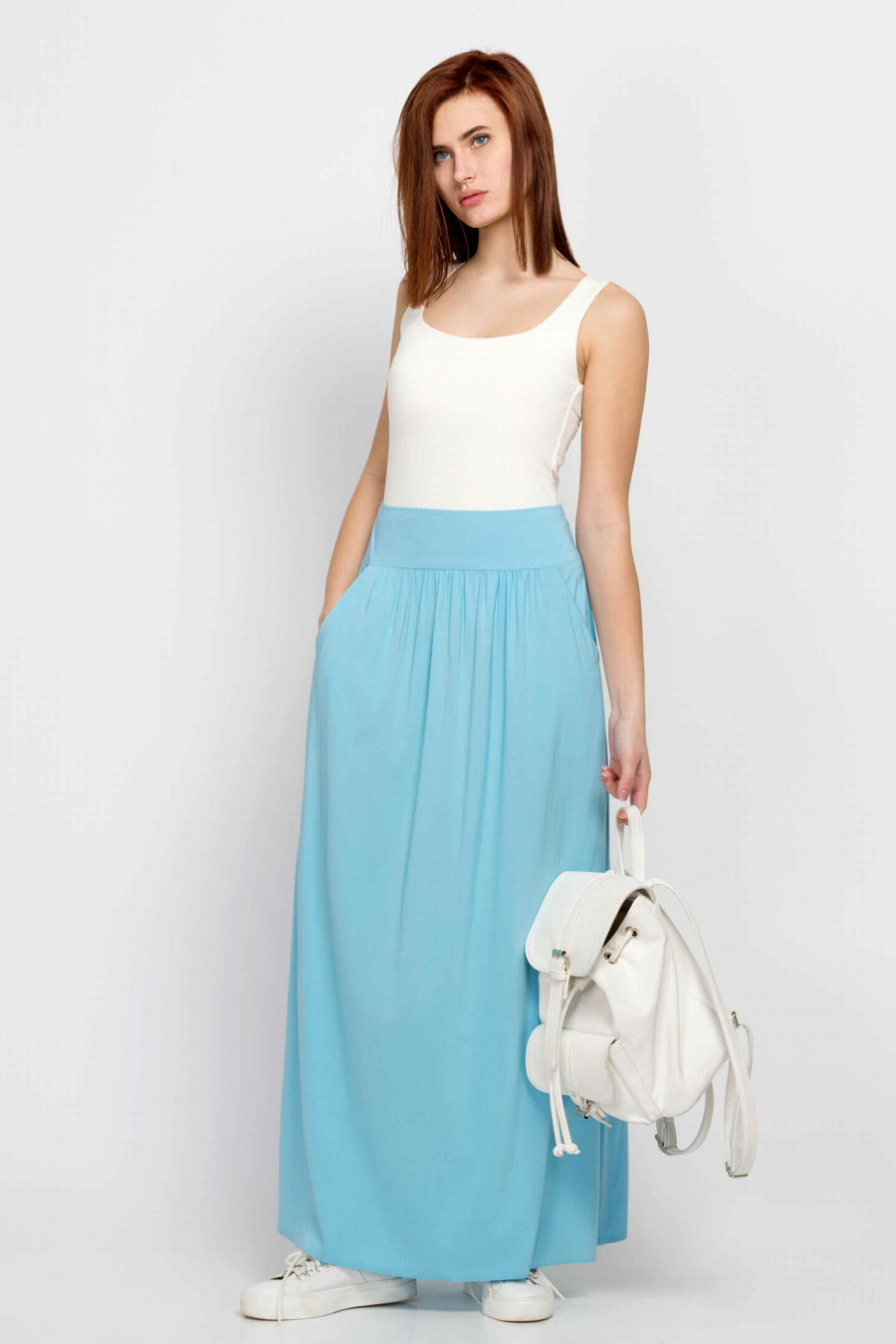 Легкая юбка в пол. Ткань струящаяся, мягкая с эффектом эластичности приятного пастельно-голубого цвета. Юбка на поясе, по бокам удобные функциональные кармашки, сзади застежка-молния. Без подкладки. Очень комфортная модель, хорошо подойдет для создания стильного образа.