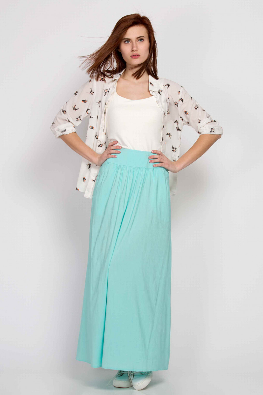 Легкая юбка в пол. Ткань струящаяся, мягкая с эффектом эластичности нежного мятного цвета. Юбка на поясе, по бокам удобные функциональные кармашки, сзади застежка-молния. Без подкладки. Очень комфортная модель, хорошо подойдет для создания стильного образа.