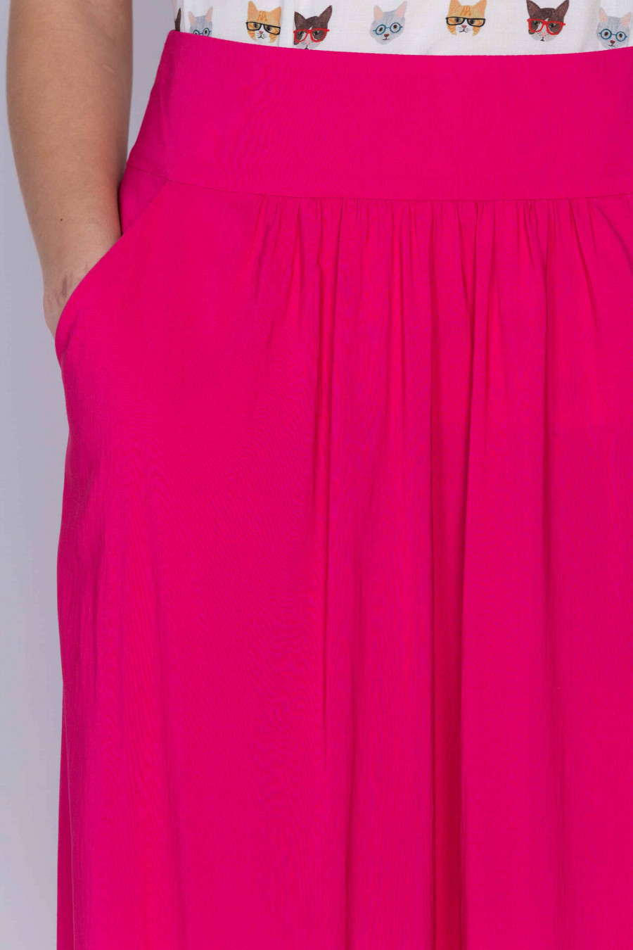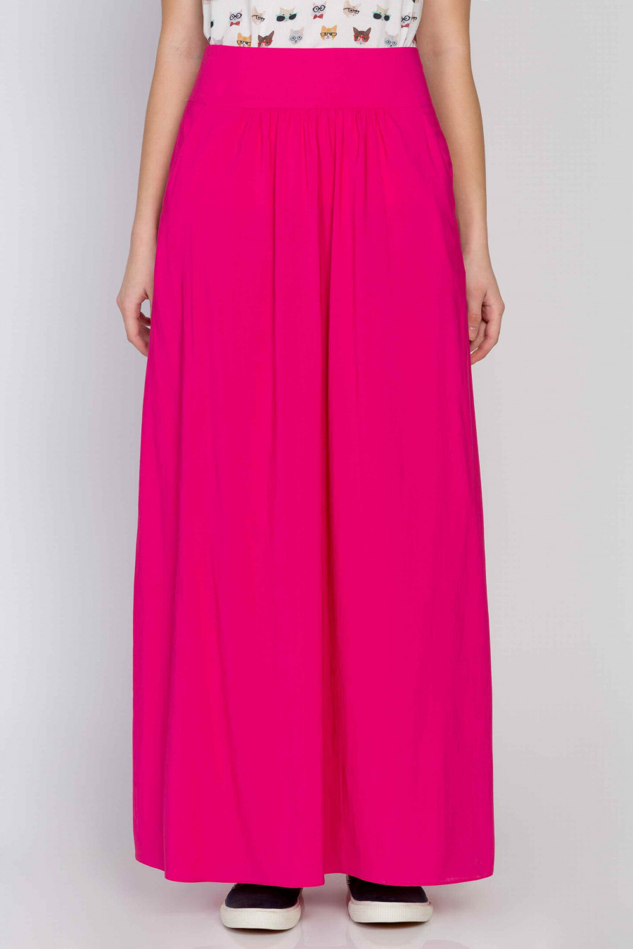 Легкая юбка в пол. Ткань струящаяся, мягкая с эффектом эластичности яркого цвета маджента. Юбка на поясе, по бокам удобные функциональные кармашки, сзади застежка-молния. Без подкладки. Очень комфортная модель, хорошо подойдет для создания стильного образа.