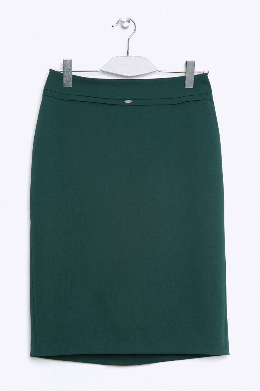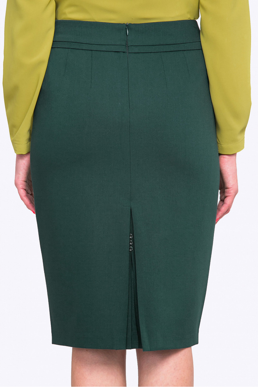 Классическая юбка-карандаш на кокетке с подкладом из очень приятной на ощупь ткани. Юбка хорошо сидит по фигуре. Сзади застежка-молния, есть шлица. Цвет ткани насыщенный зеленый, хорошо сочетается с однотонными рубашками. Отлично подойдет для офиса. Подкладка из полиэстера. Ремешок продается отдельно. Рост фотомодели 175 см.