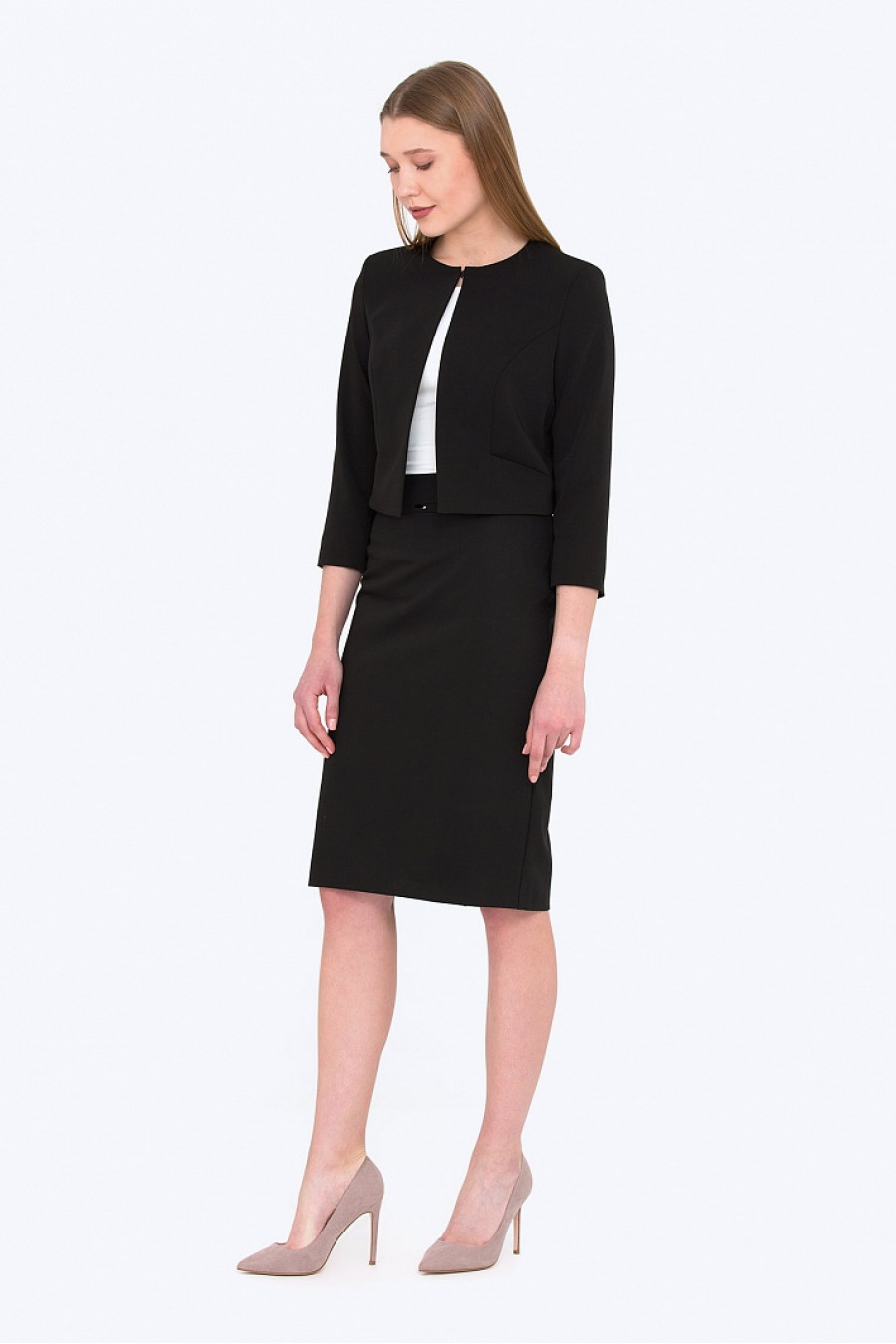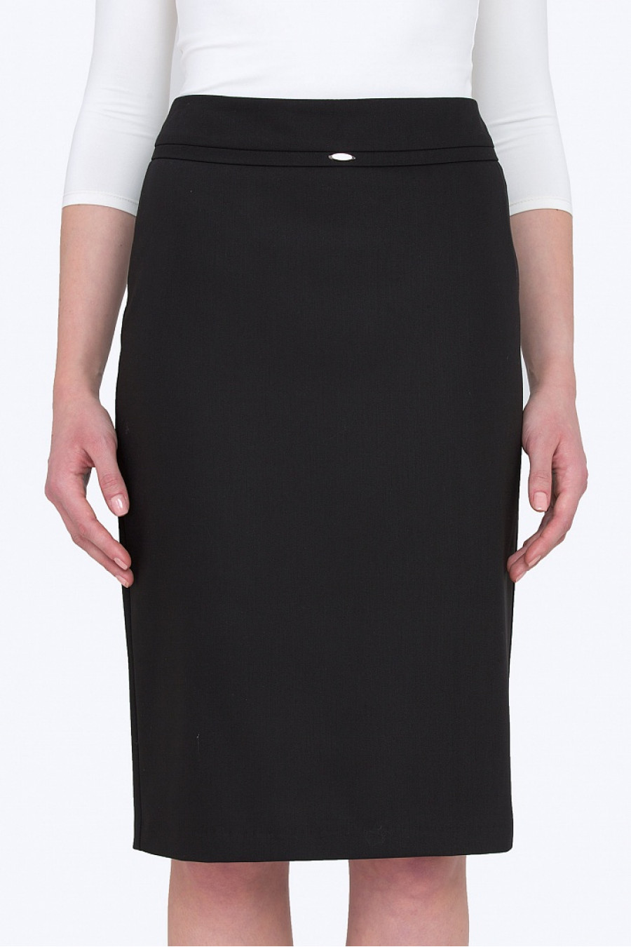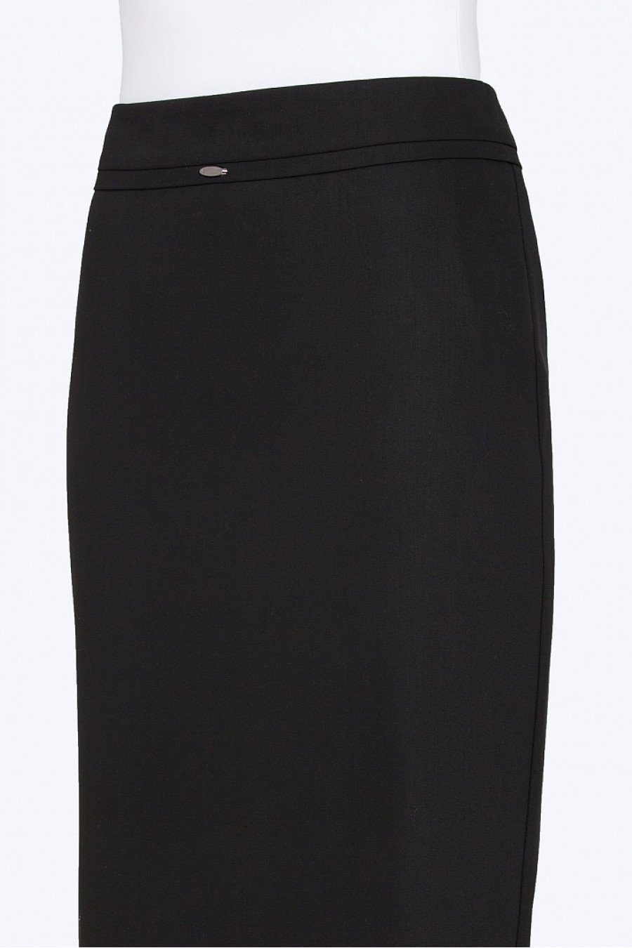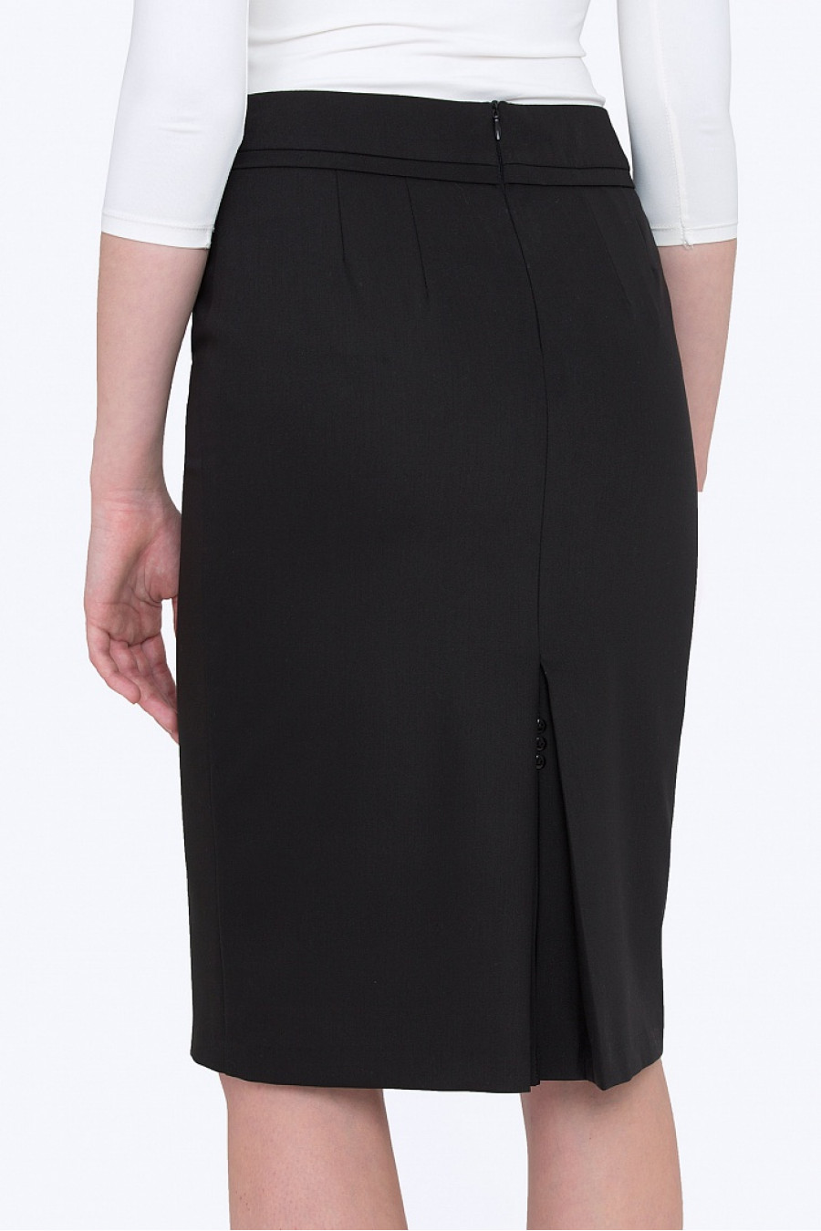 Классическая юбка-карандаш. Ткань средней плотности, гладкая. Есть подкладка из полиэстера. Пояс юбки спереди оформлен декоративной металлической заклепкой. Сзади застежка-молния. Особого внимания заслуживает разрез юбки - он оформлен оригинальными складками и тремя декоративными пуговицами. Отличная модель для офиса. Хорошо сочетается со светлыми блузками и рубашками. Длина градируется о размера к размеру.