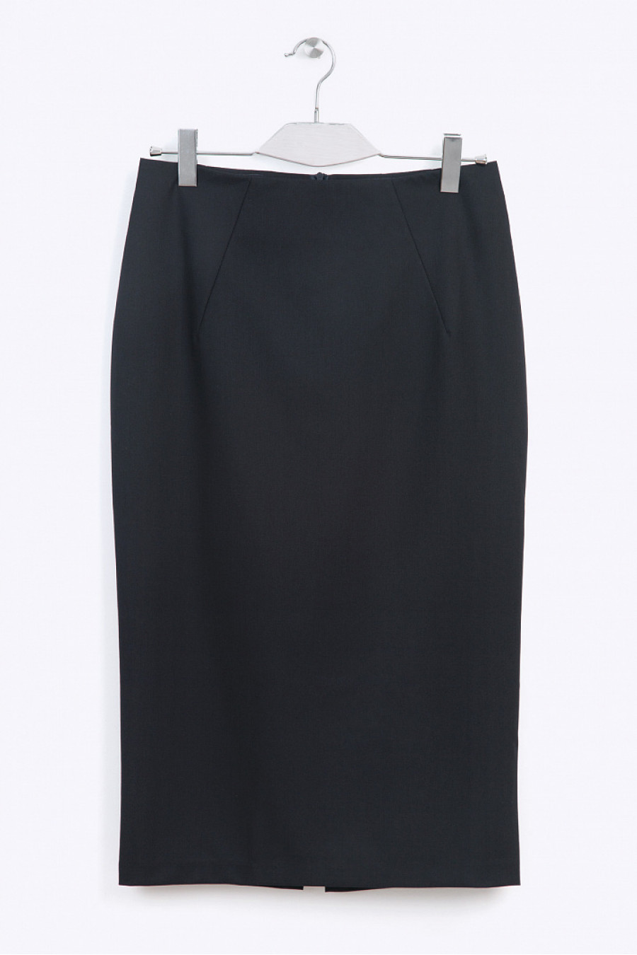 Облегающая юбка-миди из ткани средней плотности. Сзади застежка-молния и шлица. Есть подкладкаиз полиэстера. Юбка идеально сидит по фигуре, визуально вытягивает силуэт. Отличный вариант для офиса. Длина градируется от размера к размеру. Рост фотомодели 172 см.