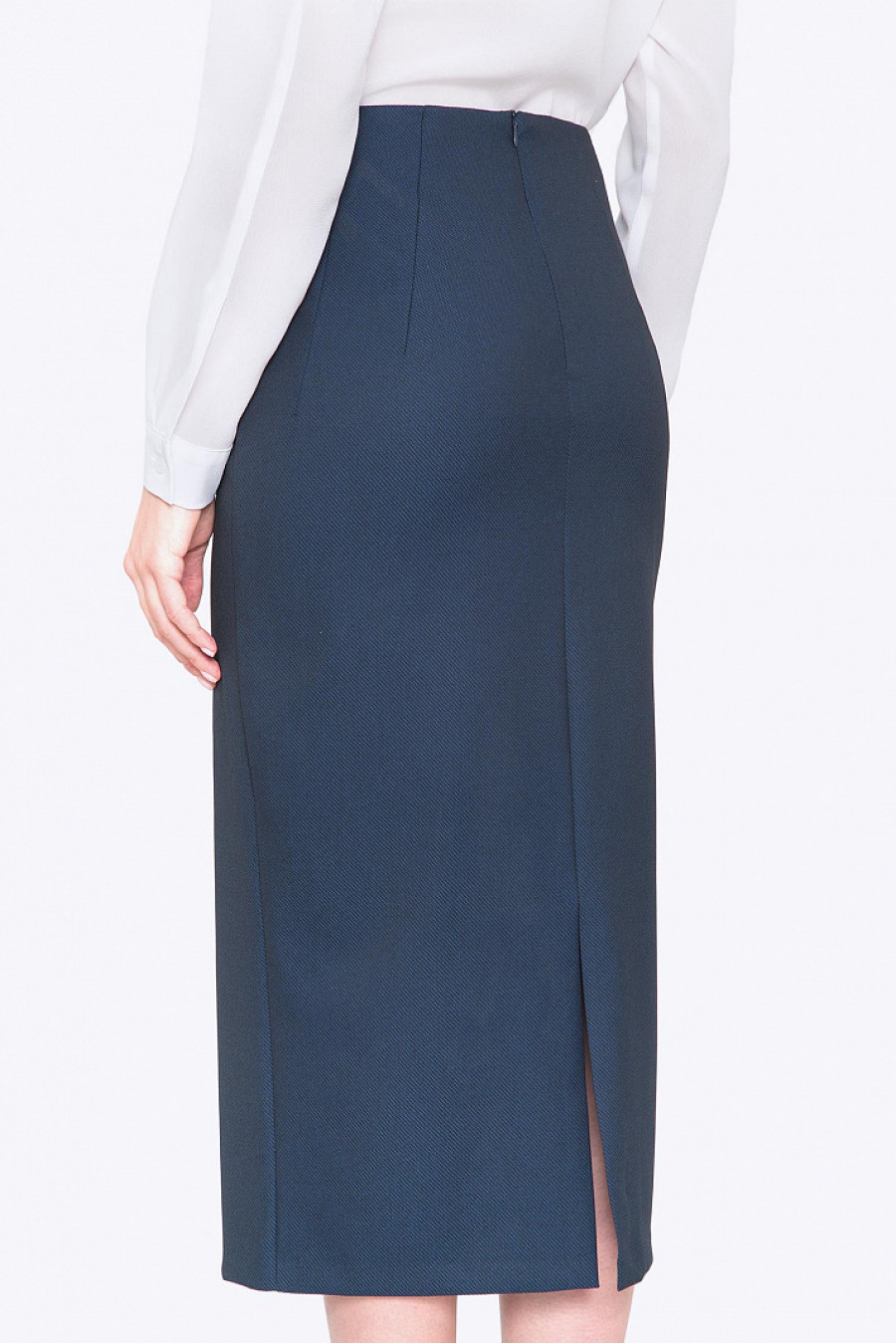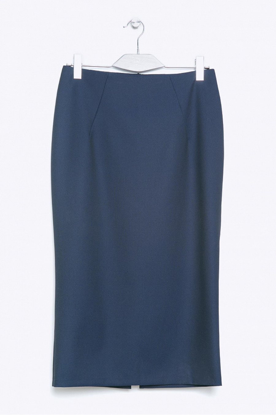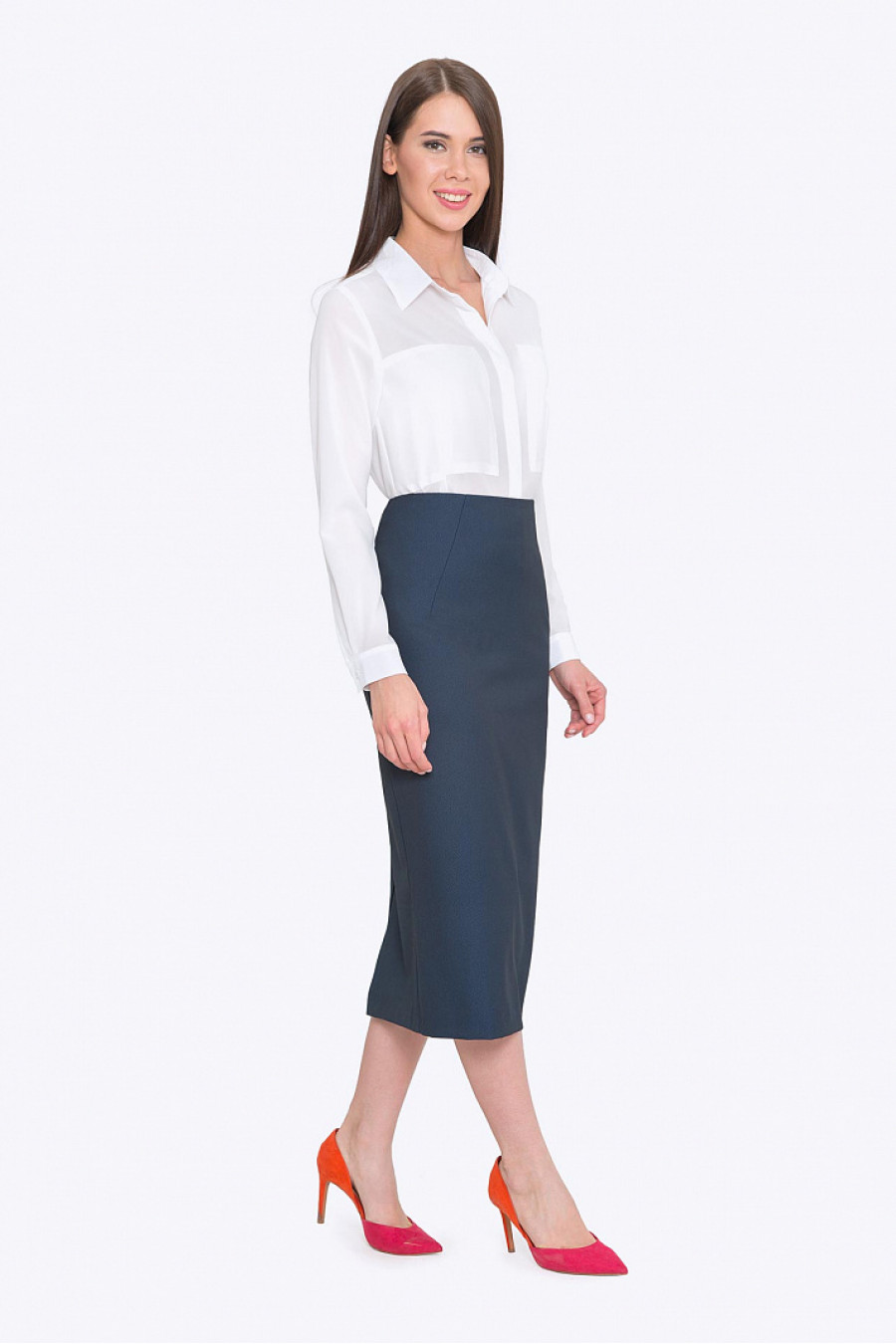 Облегающая юбка-миди из ткани средней плотности. Сзади застежка-молния и шлица. Есть подкладкаиз полиэстера. Юбка идеально сидит по фигуре, визуально вытягивает силуэт и стройнит. Отличный вариант для офиса. Длина градируется от размера к размеру. Рост фотомодели 172 см.