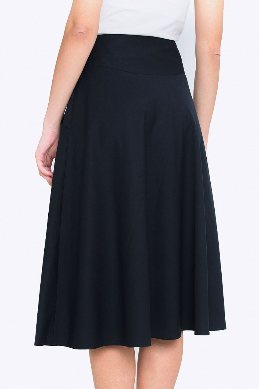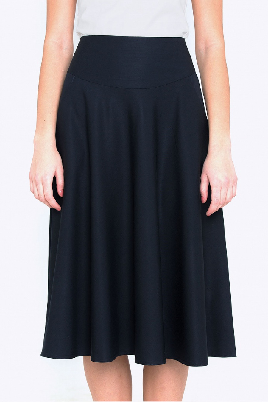 Элегантная расклешенная юбка на кокетке. Ткань плотная, с эффектом эластичности. По бокам функциональные кармашки. Благодаря модельной кокетке, юбка визуально утончает талию. Хорошо смотрится с рубашками и блузками. Рост фотомодели 175 см. Длина градируется от размера к размеру. Без подкладки.