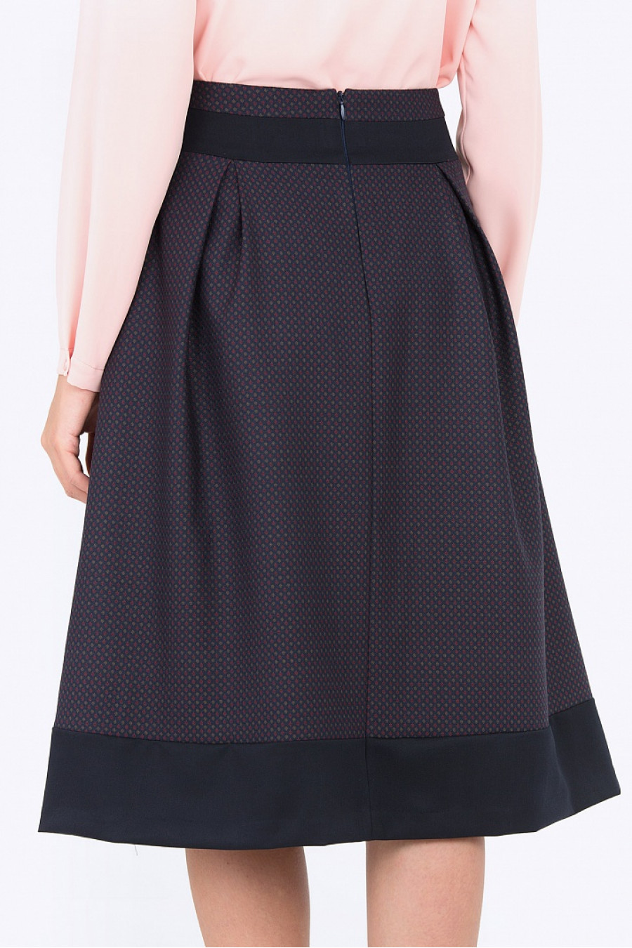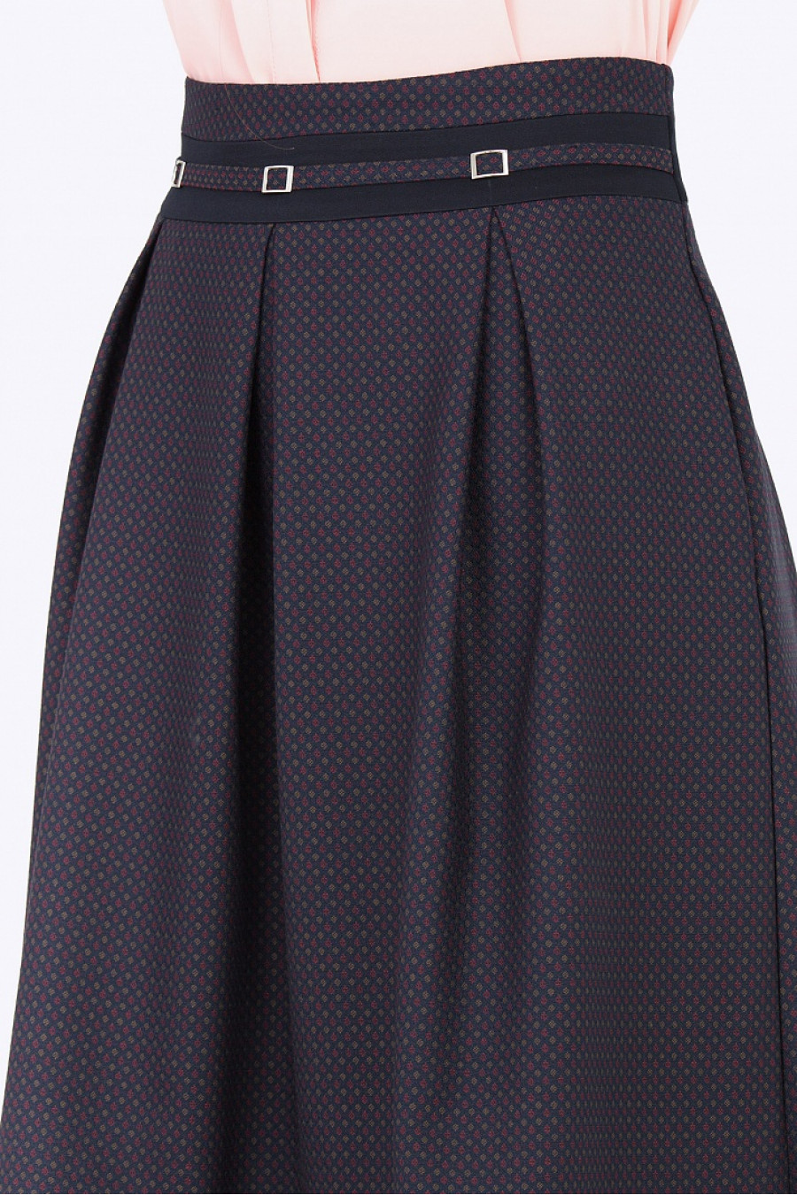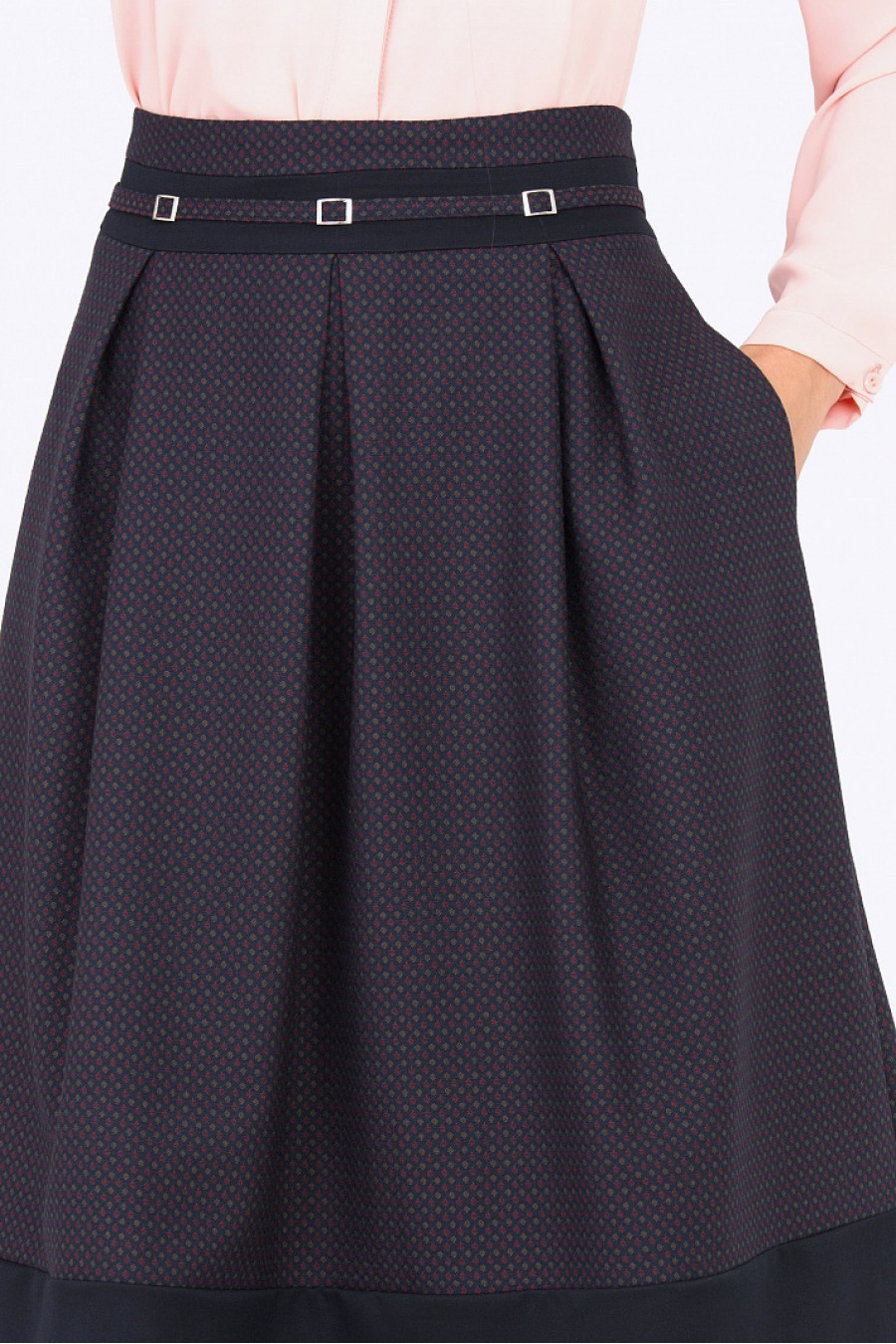 Юбка клеш с встречными складками. Ткань, средней плотности, очень приятная на ощупь. Есть подкладка, по бокам удобные кармашки. Юбка украшена декоративным тканевым поясом с аккуратными пряжками, подол оформлен отделочной тканью темно-синего цвета. Юбка поможет создать женственный романтичный образ. Рост фотомодели 172 см.