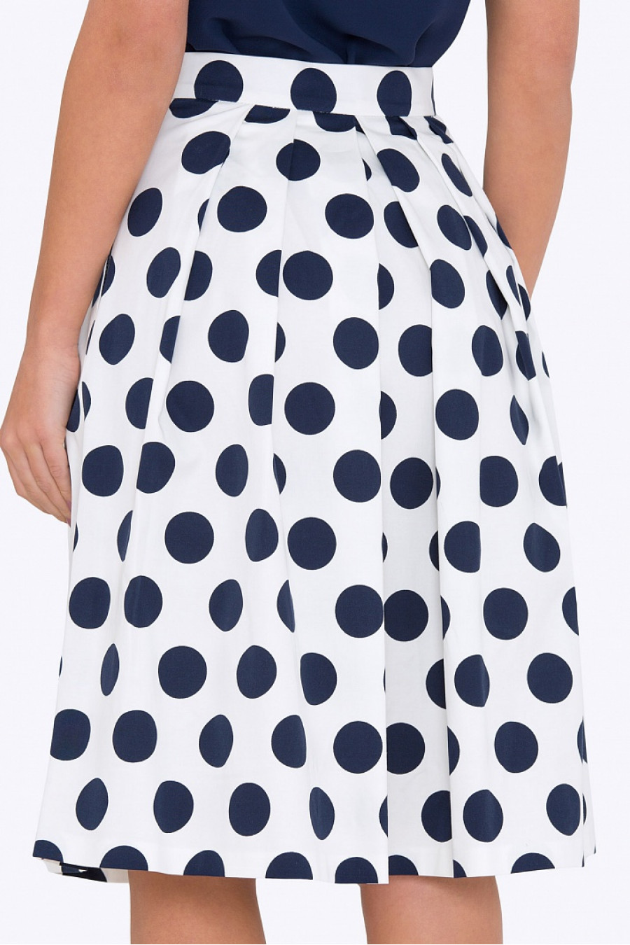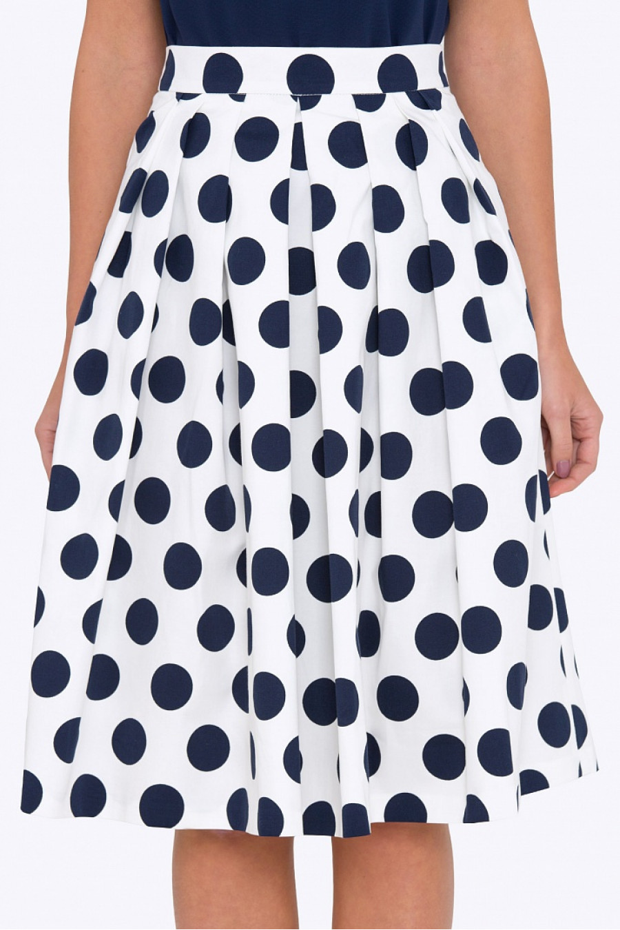 Расклешенная юбка на поясе со встречными складками. Ткань эластичная - натуральный хлопок с добавлением лайкры. По бокам в швах удобные кармашки, с левого бока застежка-молния. Юбка без подкладки, не просвечивает, хорошо держит форму. Отличная модель для весенне-летнего сезона. Рост фотомодели 173 см.