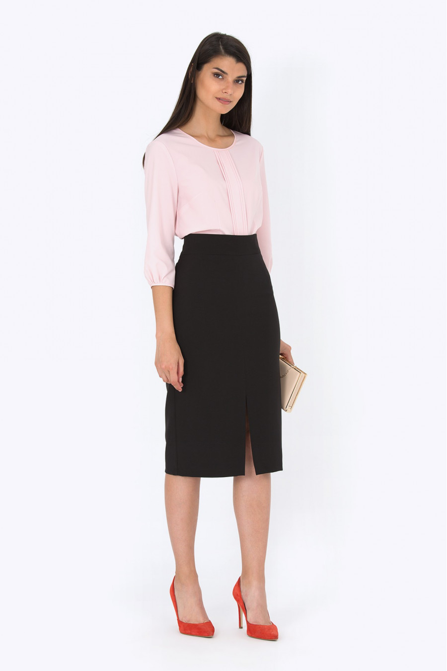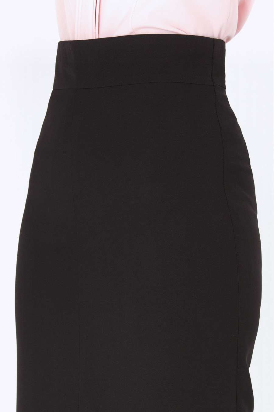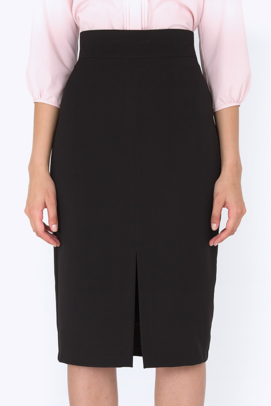 Роскошная юбка миди на поясе черного цвета. Ткань струящаяся, с эффектом эластичности. Есть подкладка из полиэстера. Юбка идеально облегает фигуру, позволяет зрительно вытянуть силуэт, хорошо смотрится с туфлями на высоких каблуках. Образ на фотографии дополняет блузка b 2170-coldi.