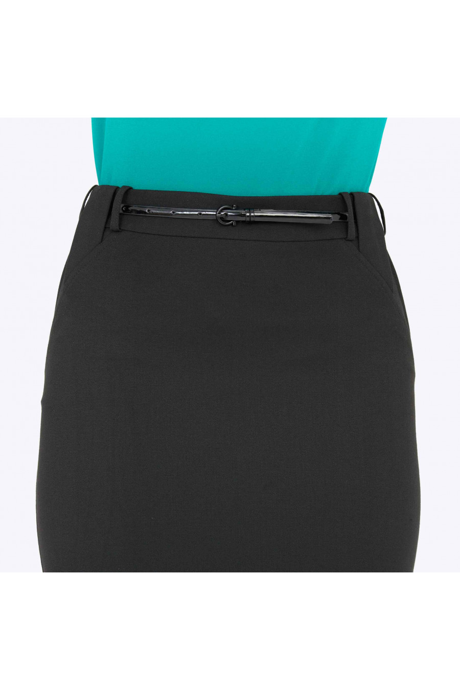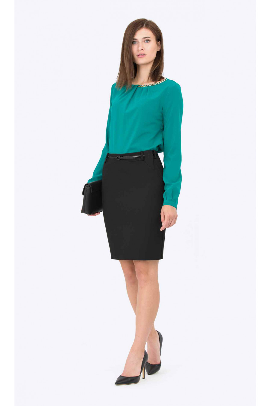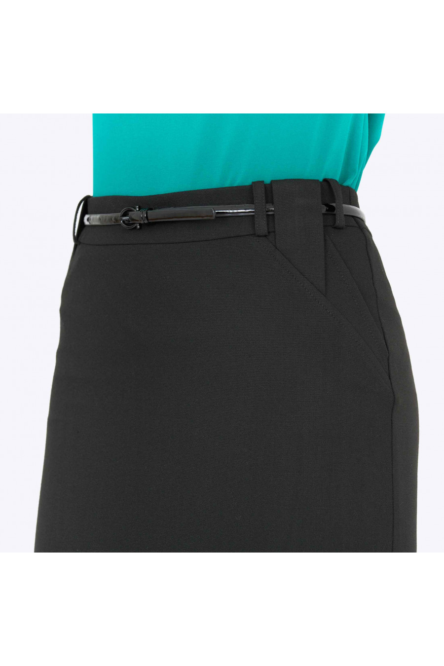 Замечательная офисная юбка черного цвета. Ткань эластичная, приятная на ощупь. На поясе есть шлевки, ремешок продается отдельно. По бокам - карманы-обманки. Модель хорошо сидит по фигуре, сочетается с офисными рубашками и блузками. Идеально подойдет для создания делового образа. Образ на фотографии дополняет блузка b 2117-kristel.