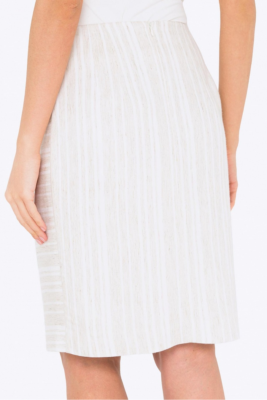 Юбка с запахом из ткани на основе вискозыс добавлением льна, в полоску. Главный конструктивный и художественный элемент запах, который придает юбке неповторимость, сексуальность и индивидуальность. Преимуществом является то, что такой фасон зрительно стройнит силуэт. Модель прекрасно подойдет как для прогулок, так и для офиса. Рост фотомодели 172см.