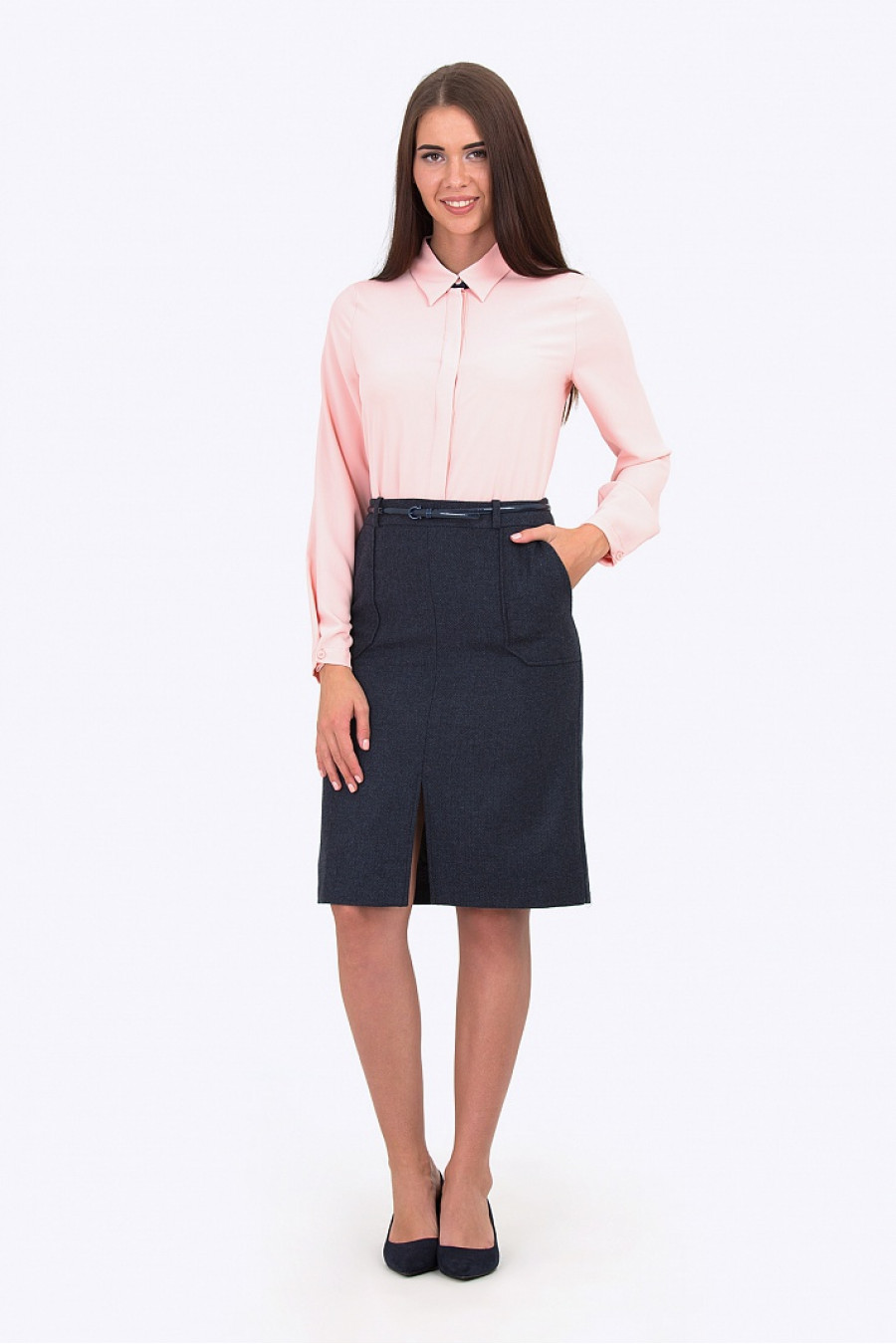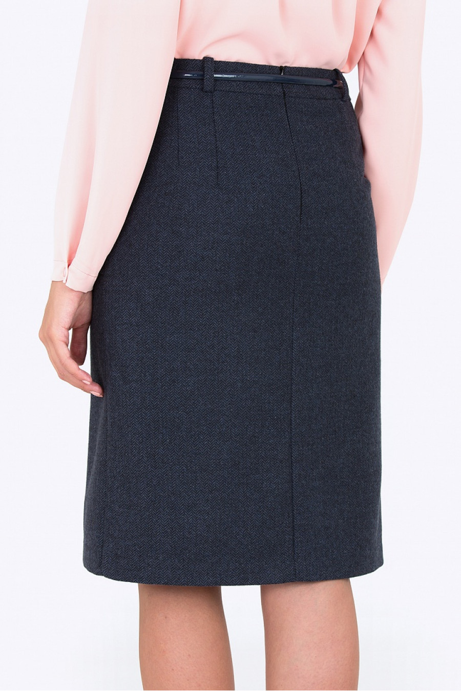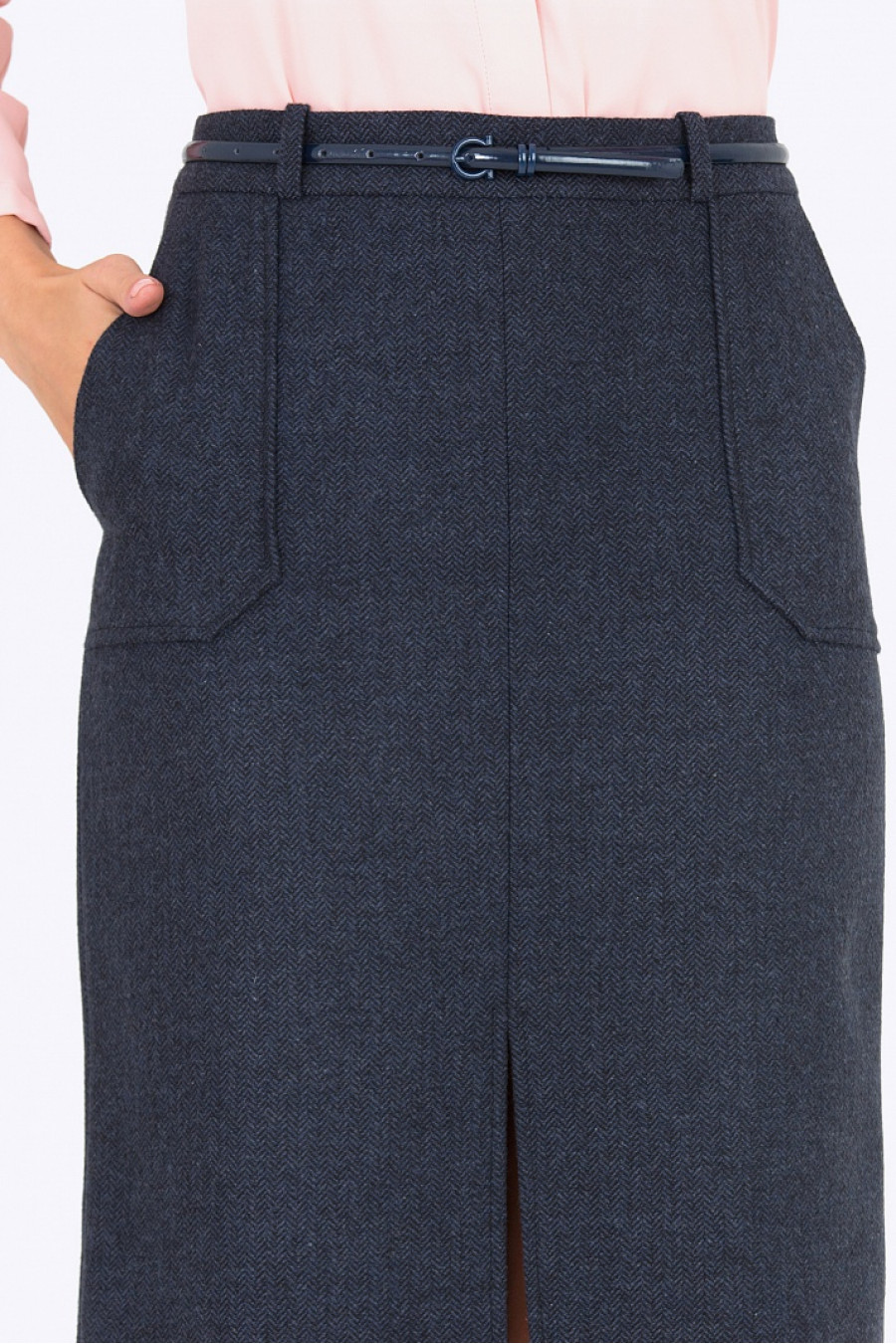 Классическая юбка на поясе. Ткань мягкая, на основе шерсти приятного темно-синего цвета с мелким принтом. Юбка спереди оформлена крупными функциональными карманами и аккуратным разрезом. На поясе есть шлевки, ремешок продается отдельно. Есть подкладка из полиэстера. Отличная юбка на каждый день. Очень неприхотливая в носке, практически не мнется.