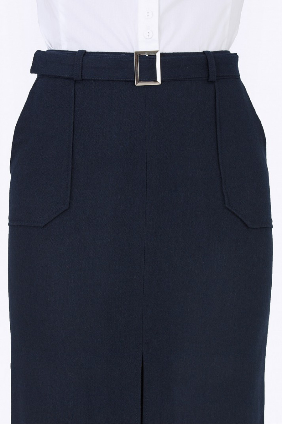 Классическая юбка на поясе. Ткань мягкая,с эффектом тонкой шерсти приятного темно-синегоцвета. Юбка спереди оформлена крупными функциональными карманами и аккуратным разрезом. На поясе есть шлевки, в комплект входит тканевый пояс с металлической пряжкой. Есть подкладка из полиэстера. Отличная юбка на каждый день. Очень неприхотливая в носке, практически не мнется.