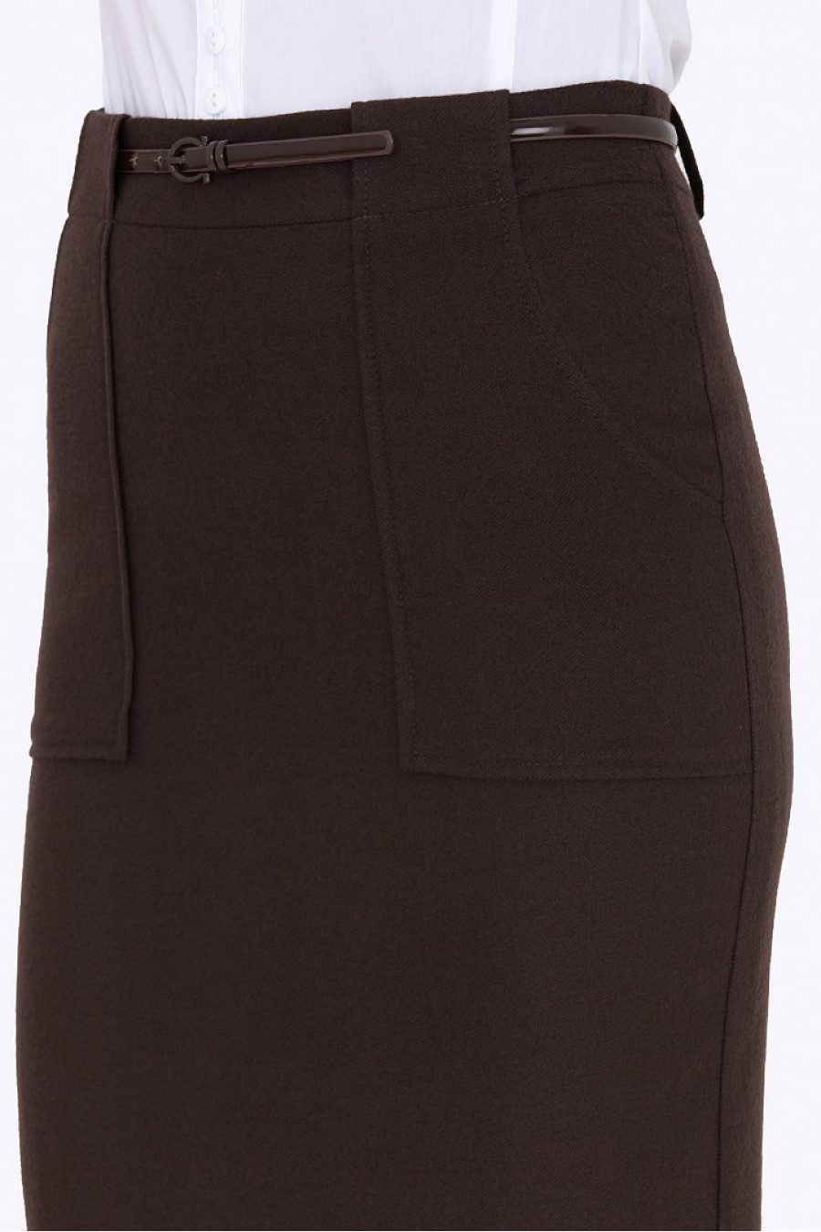 Классическая юбка на поясе. Ткань мягкая с эффектом тонкой шерсти приятного коричневого цвета. Юбка спереди оформлена крупными функциональными карманами. На поясе есть шлевки, ремешок продается отдельно. Есть подкладка из полиэстера. Отличная юбка на каждый день. Очень неприхотливая в носке, практически не мнется.