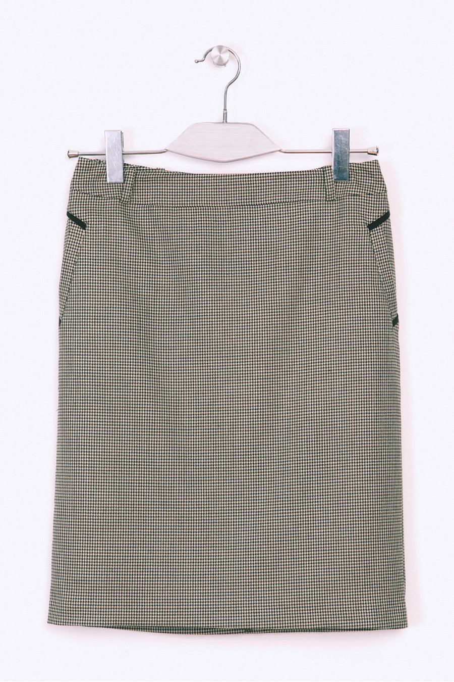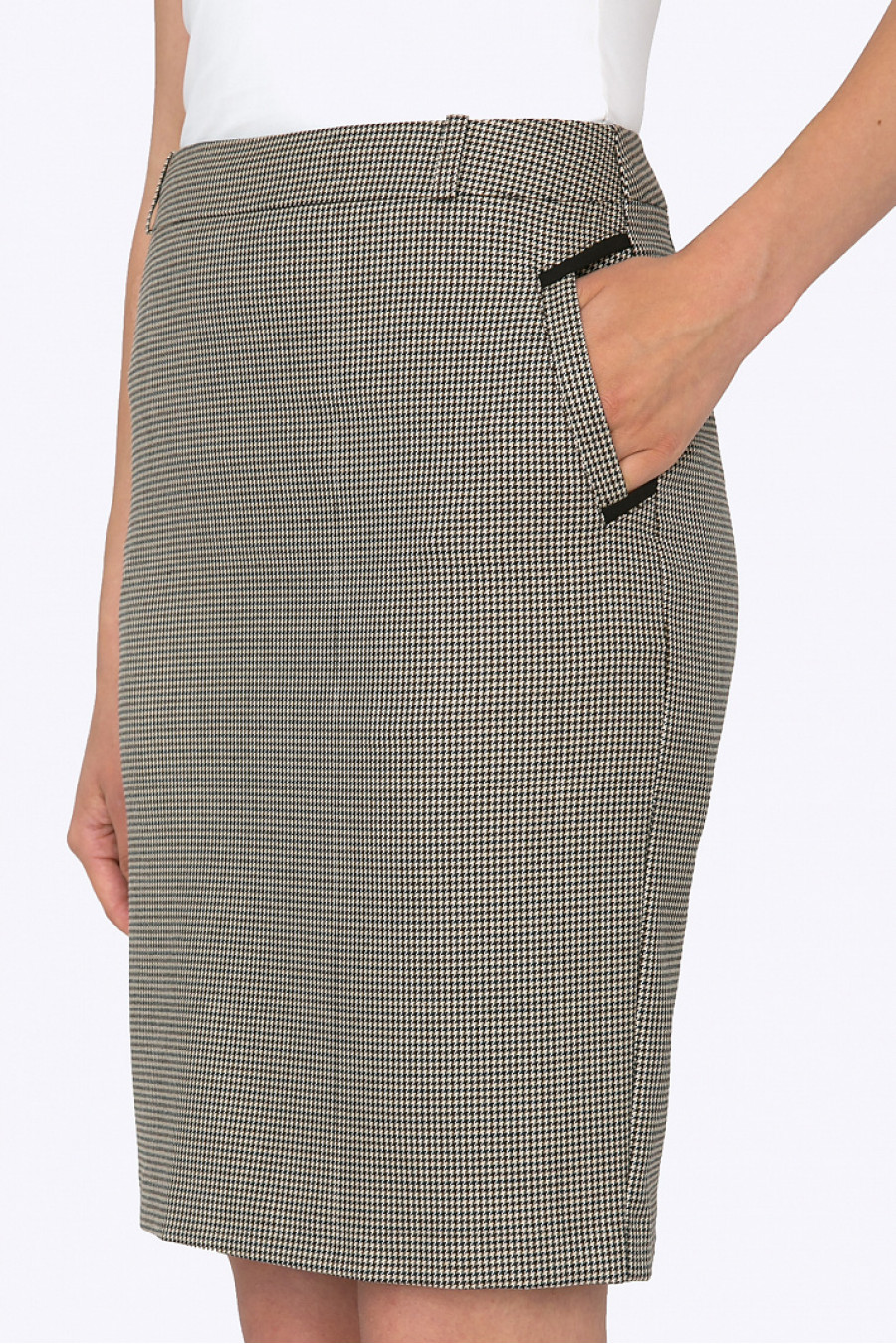 Юбка-карандаш. Ткань в гусиную лапку. На поясе есть шлевки. Юбка по бокам оформлена функциональными карманами. Есть подкладка из полиэстера. Отличная модель на каждый день, очень комфортная и неприхотливая в носке. Рост фотомодели 178см.