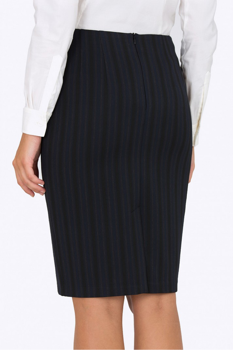 Классическая юбка-карандаш. Ткань костюмная, эластичная в черную и темно-синюю вертикальнуюполоску. Есть подкладка из полиэстера. Юбка хорошо сидит по фигуре, сочетается с однотонными классическими блузками. Отличный выбор для офиса.
