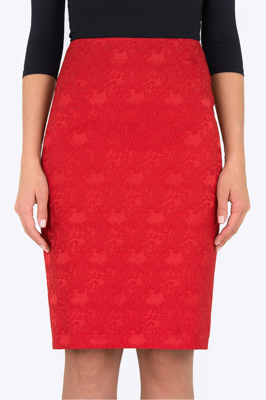 Нарядная юбка-карандаш. Ткань фактурная, темно-красный жаккард. Есть подкладка из полиэстера. Юбка хорошо сидит по фигуре, сочетается с однотонными классическими блузками. Отличный выбор для праздничного мероприятия.