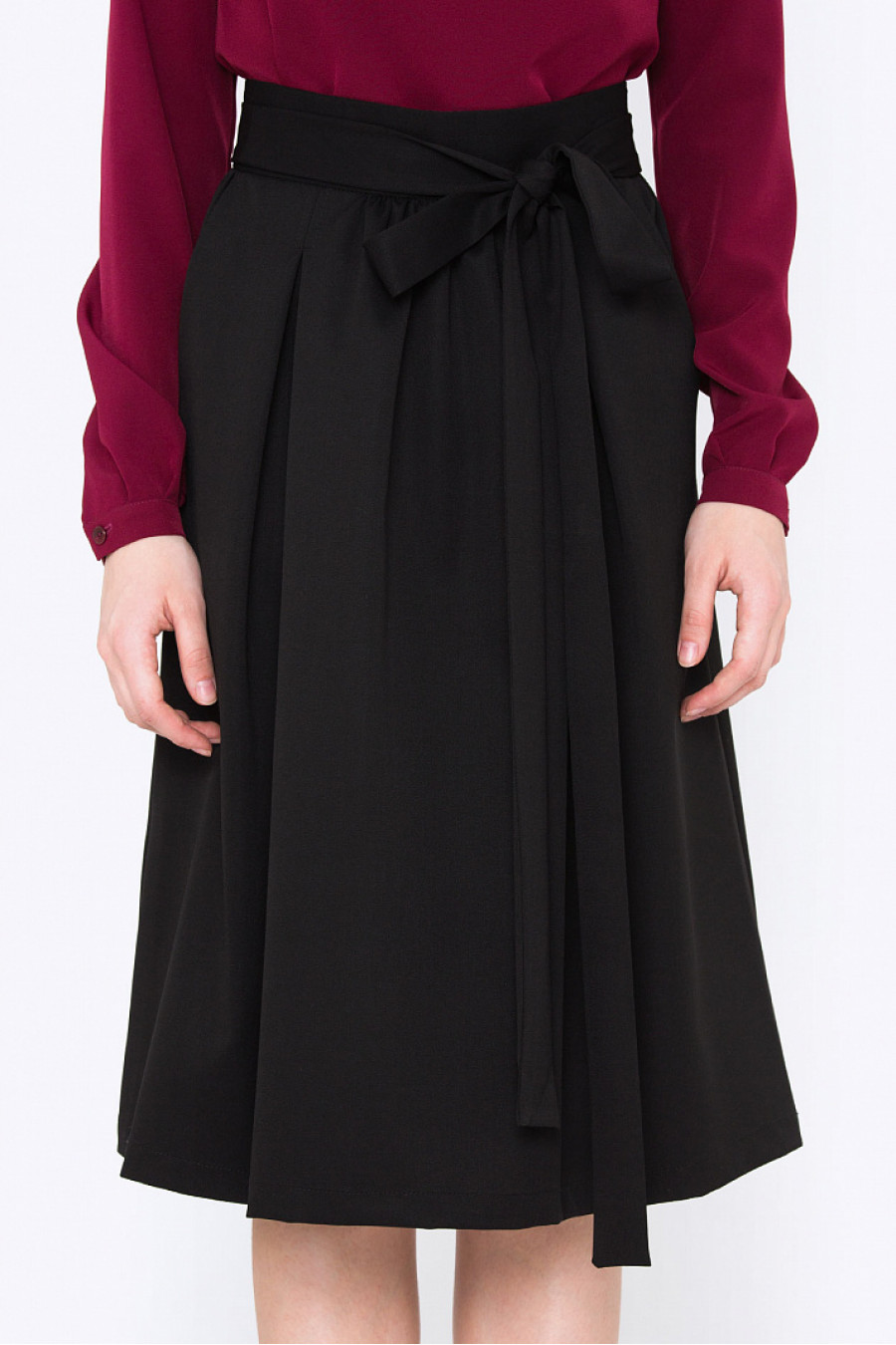 Расклешенная юбка с мягкими складками. Ткань гладкая, струящаяся. В комплект входит аккуратный тканевый пояс.Без подкладки. Очень комфортная модель, хорошо подойдет для повседневной носки. Рост фотомодели 170см. Длина градируется от размера к размеру.