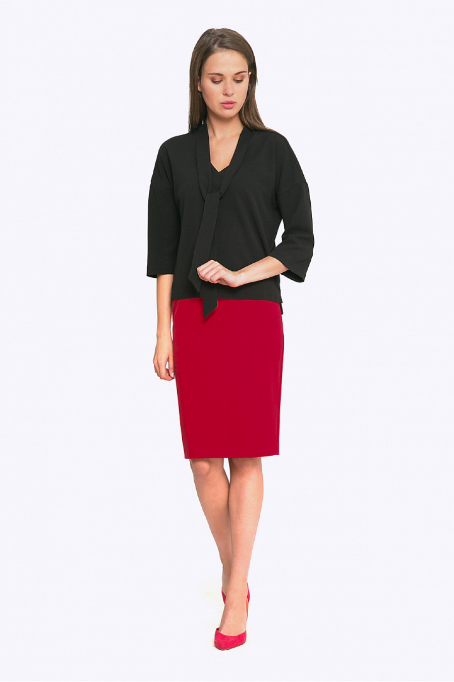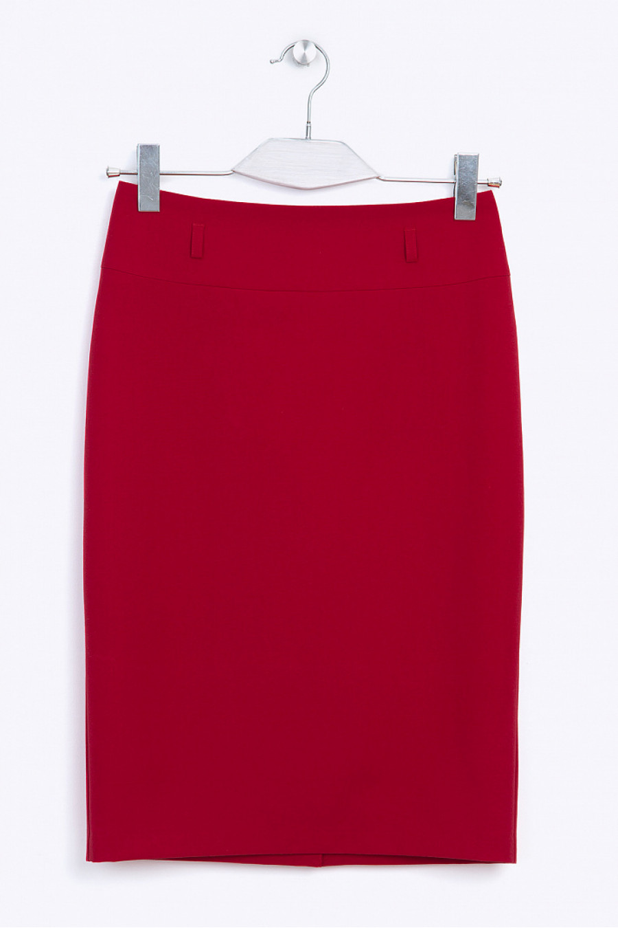 Классическая юбка-карандаш из плотной ткани. Сзади застежка-молнияишлица. Цвет ткани красный. Есть подкладка. Ремешок продается отдельно. Отличный выбор для создания делового лука. Рост фотомодели 175см.