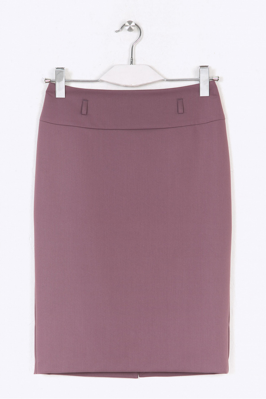 Юбка-карандаш мягкого лилового цвета. Модель выполнена на широкой кокетке, дополненной по средней линии маленькими шлёвками. Имеет высокую посадку, плотно облегает фигуру. На спинке в среднем шве расположены застёжка «молния» и шлица. Образ на фото дополнен B2300-oswalt . Рост фотомодели 177см.