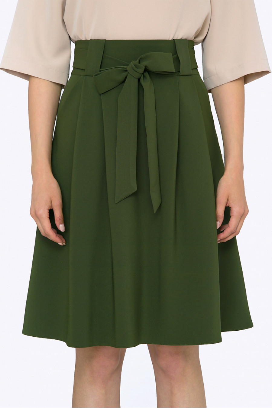 Расклешенная юбка с мягкими складками. Ткань средней плотности. На поясе есть крупные шлевки, в комплект входиттканевый пояс. По бокам удобные карманы. Есть подкладка. Очень комфортная модель, хорошо подойдет для повседневной носки.