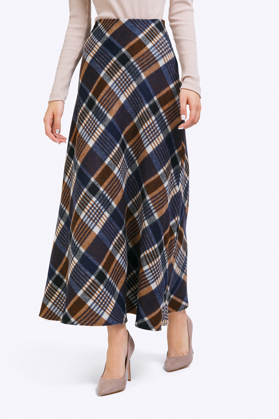 Длинная юбка трапециевидного силуэта из фактурной полушерсти,