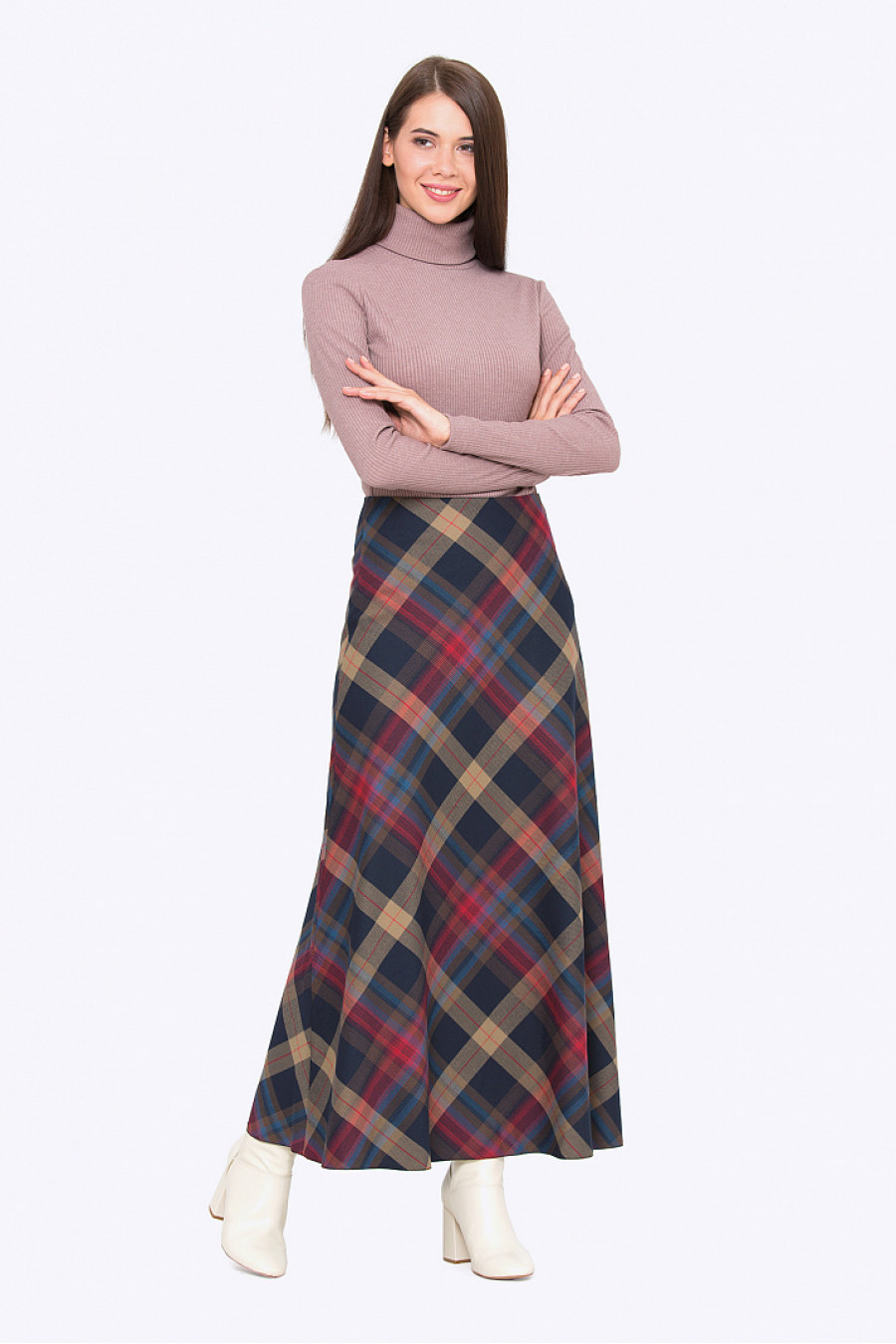 Элегантная юбка A-силуэта. Ткань мягкая, эластичная в крупнуюклетку,приятная на ощупь.Сбоку застежка-молния. Юбка хорошо сидит по фигуре, зрительно удлиняет силуэт, поможет создать женственный, притягательный образ. Рост фотомодели 172см.