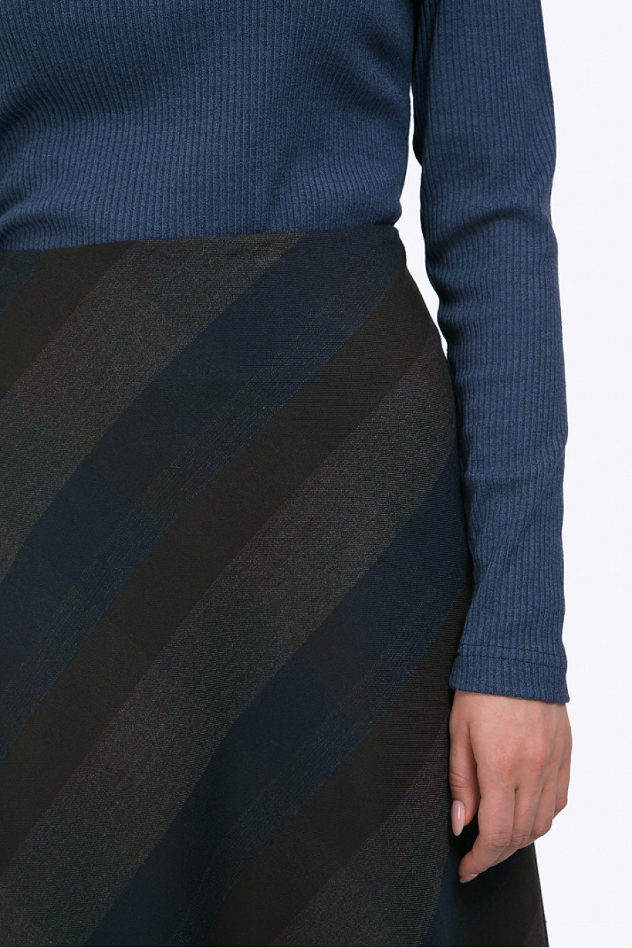 цветовой гамме и лёгким меланжевым эффектом. Модель трапециевидного силуэта,выполнена без пояса, с замком «молния» в боковом шве. Особую пикантность моделипридаёт расположенный по диагонали рисунок. Для женственных образов в городскомстиле. Образ на фото дополнен блузкой B2285-allure . Рост фотомодели 172 см.