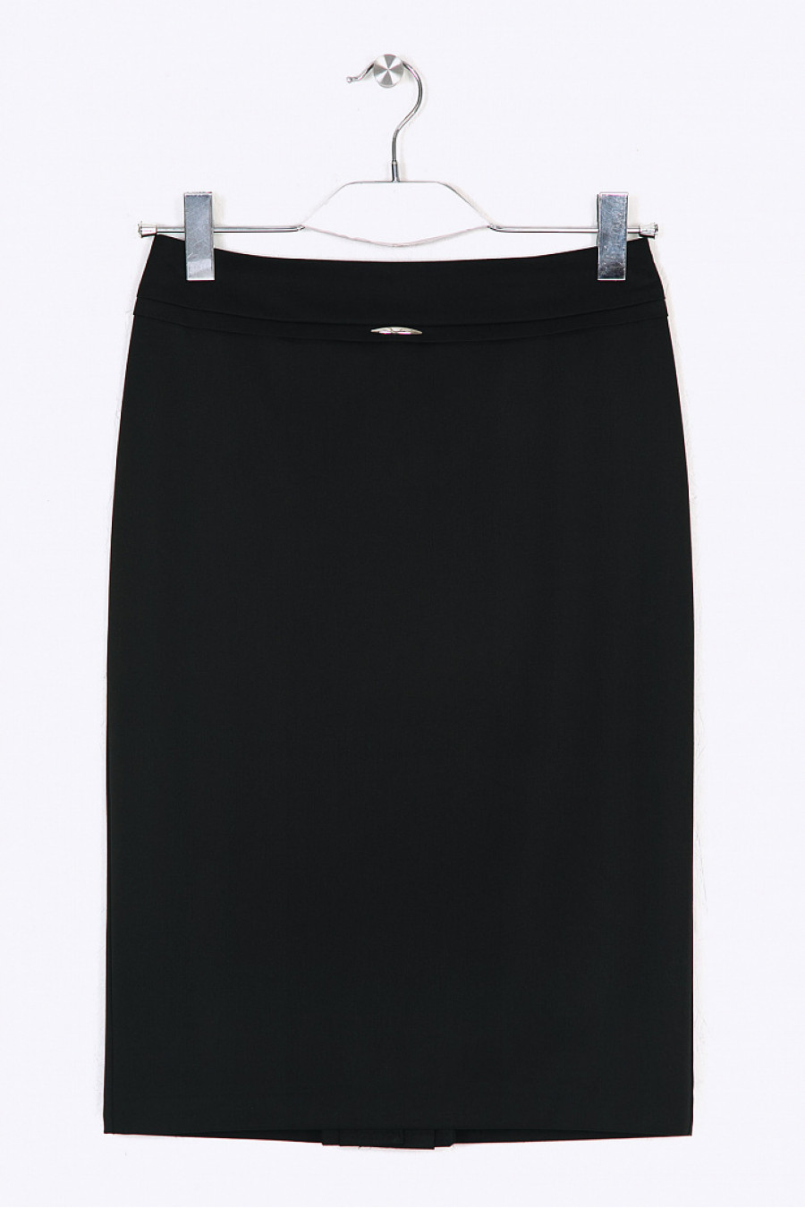 Чёрная юбка-карандаш для создания строгих образов в стиле «офисныйшик». Модель имеет идеальную посадку за счёт свойств практичного костюмного полотна.