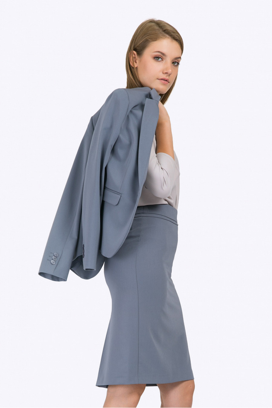 Серая с голубым отливом юбка в стиле «business casual». Модель прямого