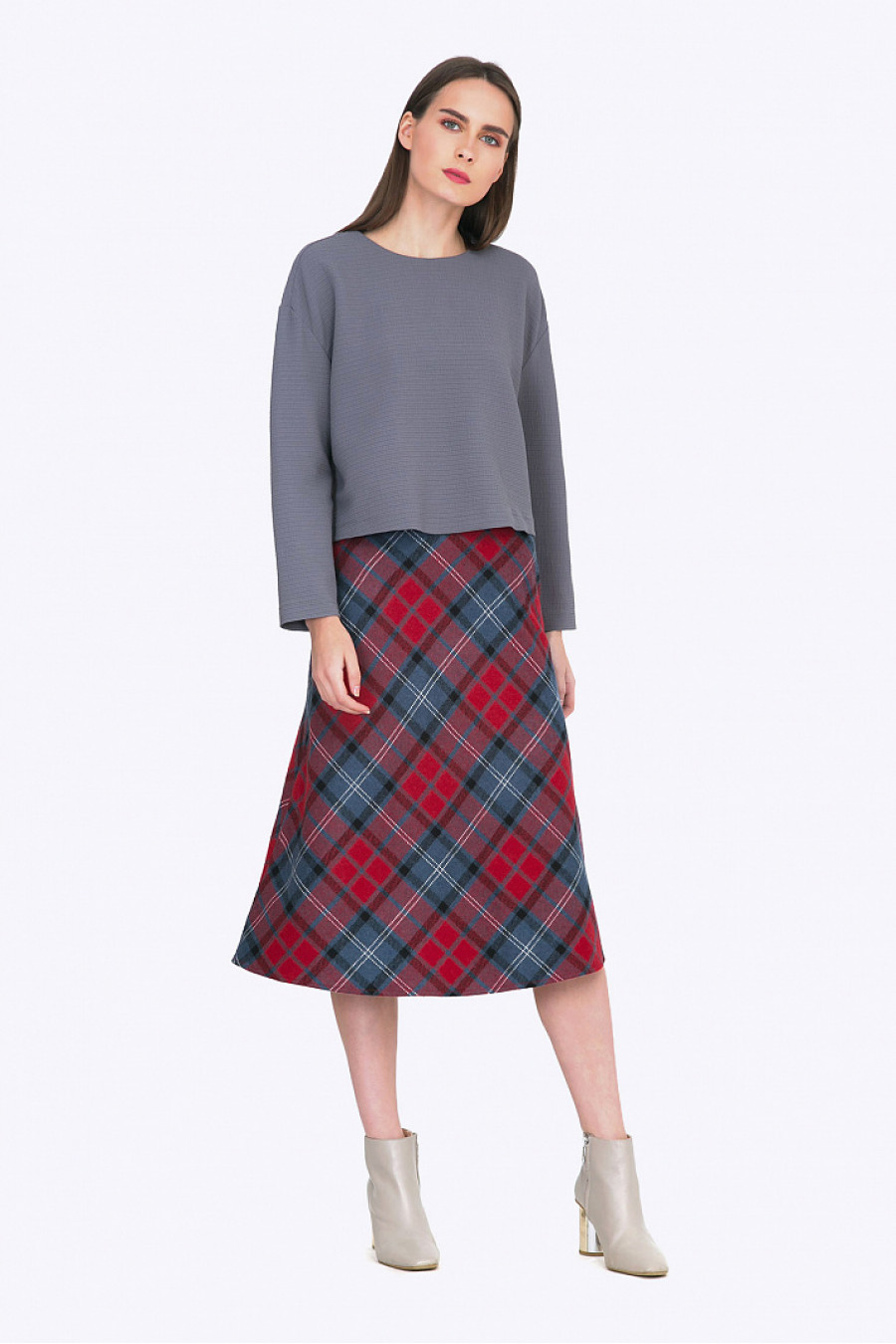 Шерстяная юбка-трапеция. Ткань плотная в крупную клетку. Есть подкладка. Сбоку застежка-молния. Юбка хорошо сидит по фигуре, зрительно удлиняет силуэт, поможет создать женственный, притягательный образ. На фото образ дополнен Блузкой B2275-galsana.