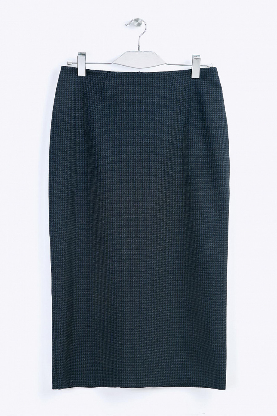 Облегающая юбка-миди. Ткань средней плотности бордового цвета.Сзади застежка-молния и разрез. Есть подкладкаиз полиэстера. Юбка идеально сидит по фигуре, визуально вытягивает силуэт. Отличный вариант для офиса. Длина градируется от размера к размеру. Рост фотомодели 172 см.
