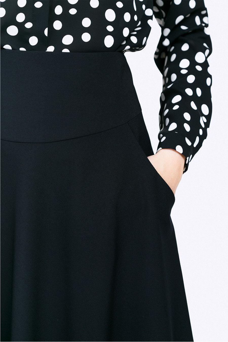 Юбка-миди глубокого тёмно-синего цвета для создания деловых и городскихобразов. Модель имеет покрой «полусолнце», высокую посадку, широкую кокеткуфигурной формы с застёжкой «молнией» в боковом шве. Дополнена боковымикарманами.Есть подкладка. Образ на фото дополнен блузкой B2300-becky . Рост фотомодели 176 см.