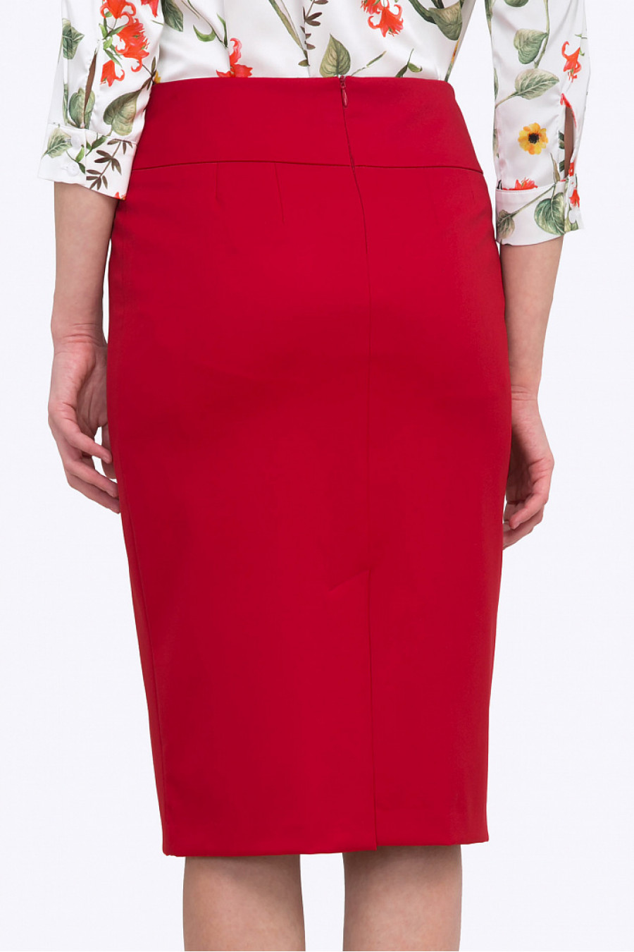 Классическая прямая юбка красного цвета оттенка «клубничный джем» из практичной и удобной смесовой ткани добавит экстравагантности деловому стилю. Модель с подкладом. Хорошо сочетается с офисными рубашками и блузами с рисунком. Длина градируется от размера к размеру. Образ на фото дополнен блузкой B2198-lumine . Рост фотомодели 176 см.