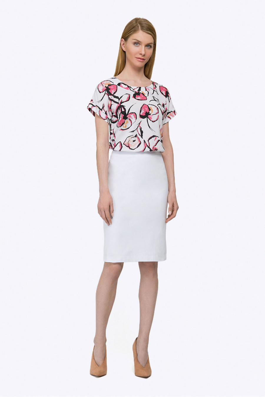 О совершенстве белого цвета сказано много. Остается только добавить, что в этом весенне-летнем сезоне хиты показов мировых подиумов - это тотал - look -и, а значит самое трендовое сочетание к этой безупречной юбке - белая блуза или топ. Также этот ослепительный оттенок идеален в комплекте с черными и красными деталями. Совершенный фасон этой модели - подчеркивает эстетику образа. Тонкий пояс и стильная диагональная вытачка формируют актуальный дизайн. Классический облегающий силуэт выгодно выделит фигуру. Легкая комфортная ткань с большим содержанием хлопка практична и приятна в носке. Модель с подкладкой.Образ на фото дополнен блузкой B2245-melani .Рост фотомодели 176 см.