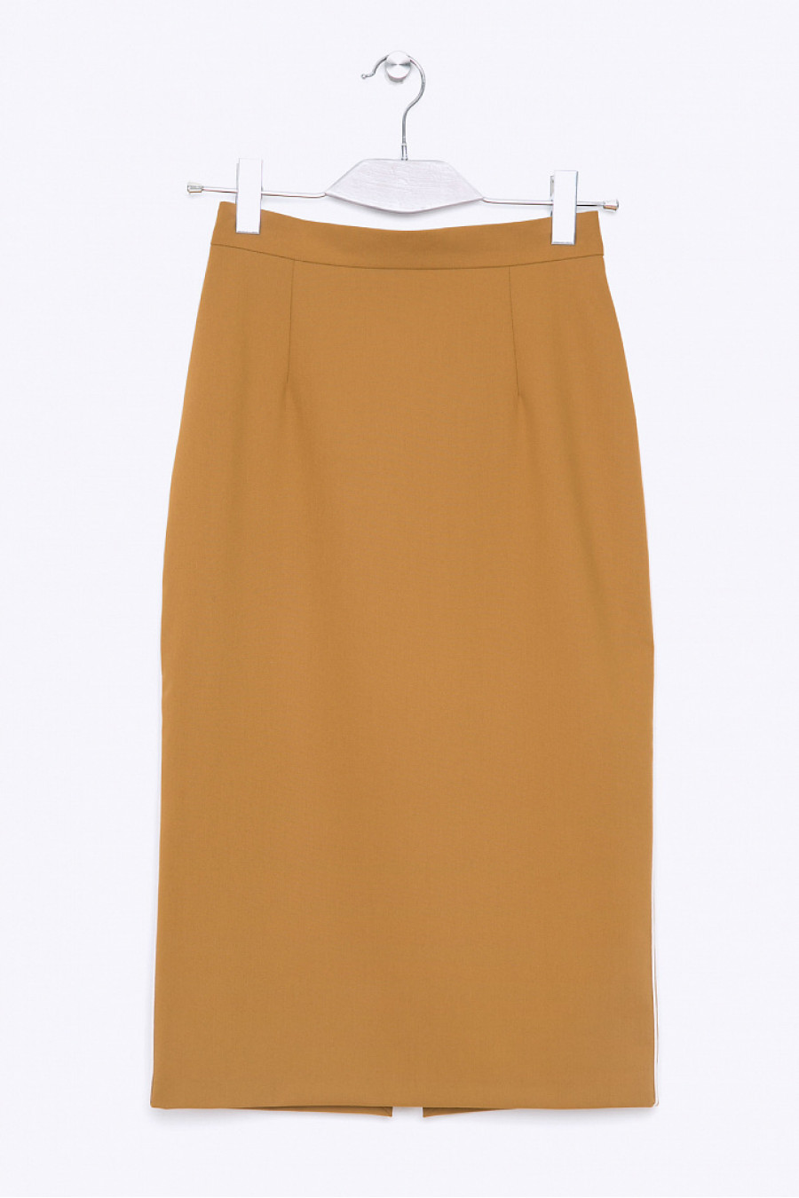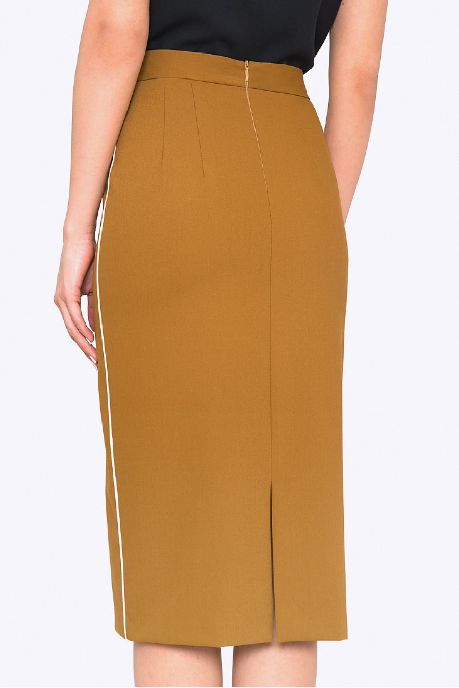 Юбка миди с завышенной талией. Ткань структурная. Есть подкладка. Юбка идеально облегает фигуру,за счет контрастного канта по бокампозволяет зрительно вытянуть силуэт. Хорошо смотрится с туфлями на высоких каблуках. Рост фотомодели 176см.