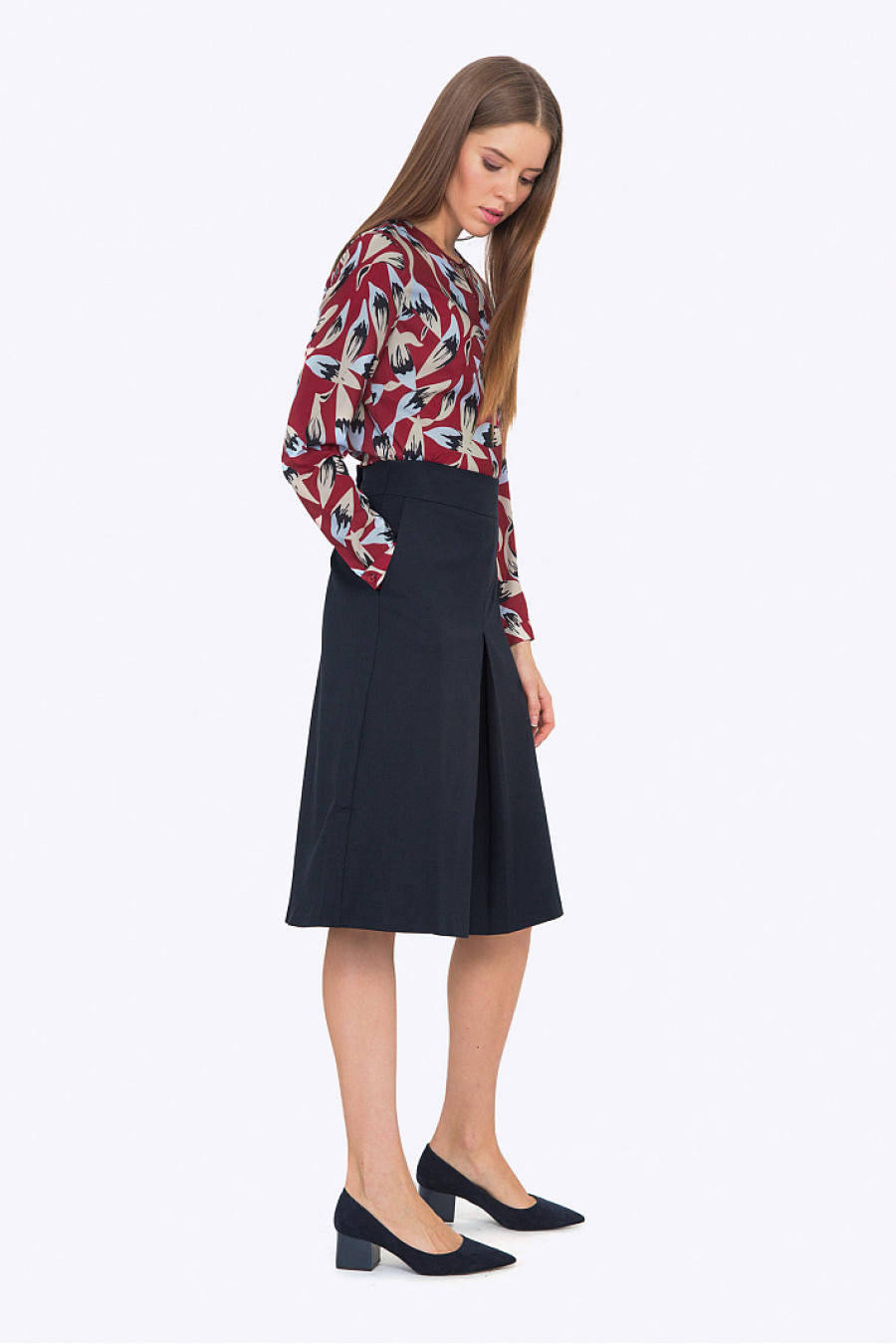 Элегантная юбка А-силуэта. Ткань средней плотности, хорошо держит форму. Есть подкладка из полиэстера. Спереди юбкаоформлена складкой.Модель хорошо сидит ине стесняет движения при ходьбе. Отличный вариант для офиса.