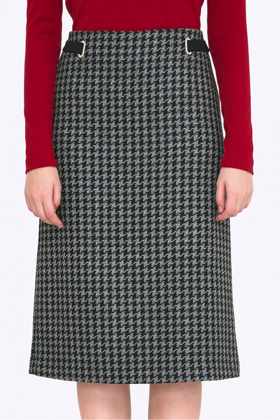 Практичная и теплая юбка в благородный серо-черный орнамент ромбиком - отличный выбор для создания элегантного рабочего или домашнего повседневного образа ( с ярким джемпером или водолазкой - как на фото) или выразительного городского ( с классическим черным полу-пальто). Прямой, слегка расклешенный силуэт, эстетичные декоративные вставки на поясе, удобная длина чуть ниже колена - сделают эту модель любимым предметом гардероба. Мягкая плотная ткань с большим содержанием шерсти защитит от офисных сквозняков и перепадов отопления. Модель с подкладкой.Образ на фото дополнен Блузка B2303-rosewood. Рост фотомодели 176 см.