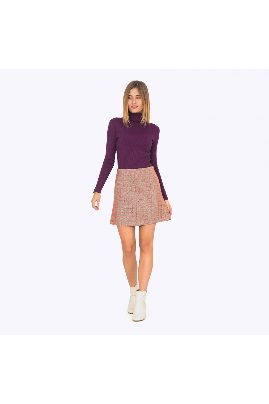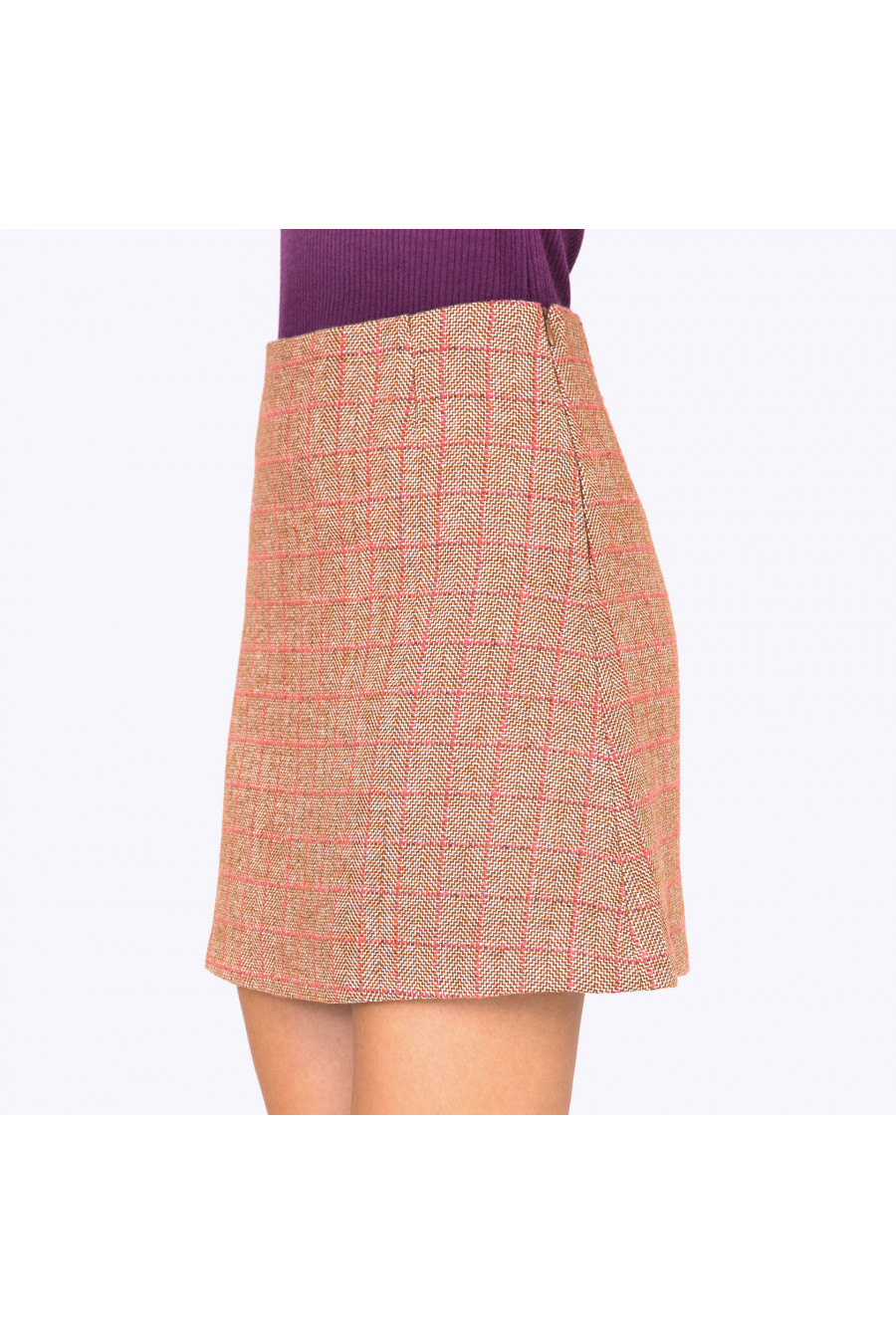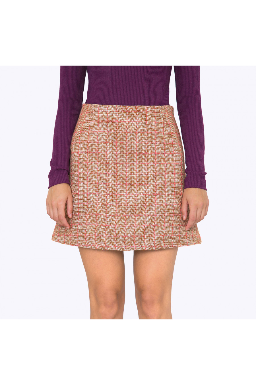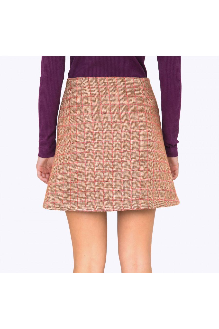 Юбка А-силуэта длиной выше колена. Ткань плотная в клетку. Есть подкладка. Застежка-молния сбоку. Стильная модель для повседневной носки.