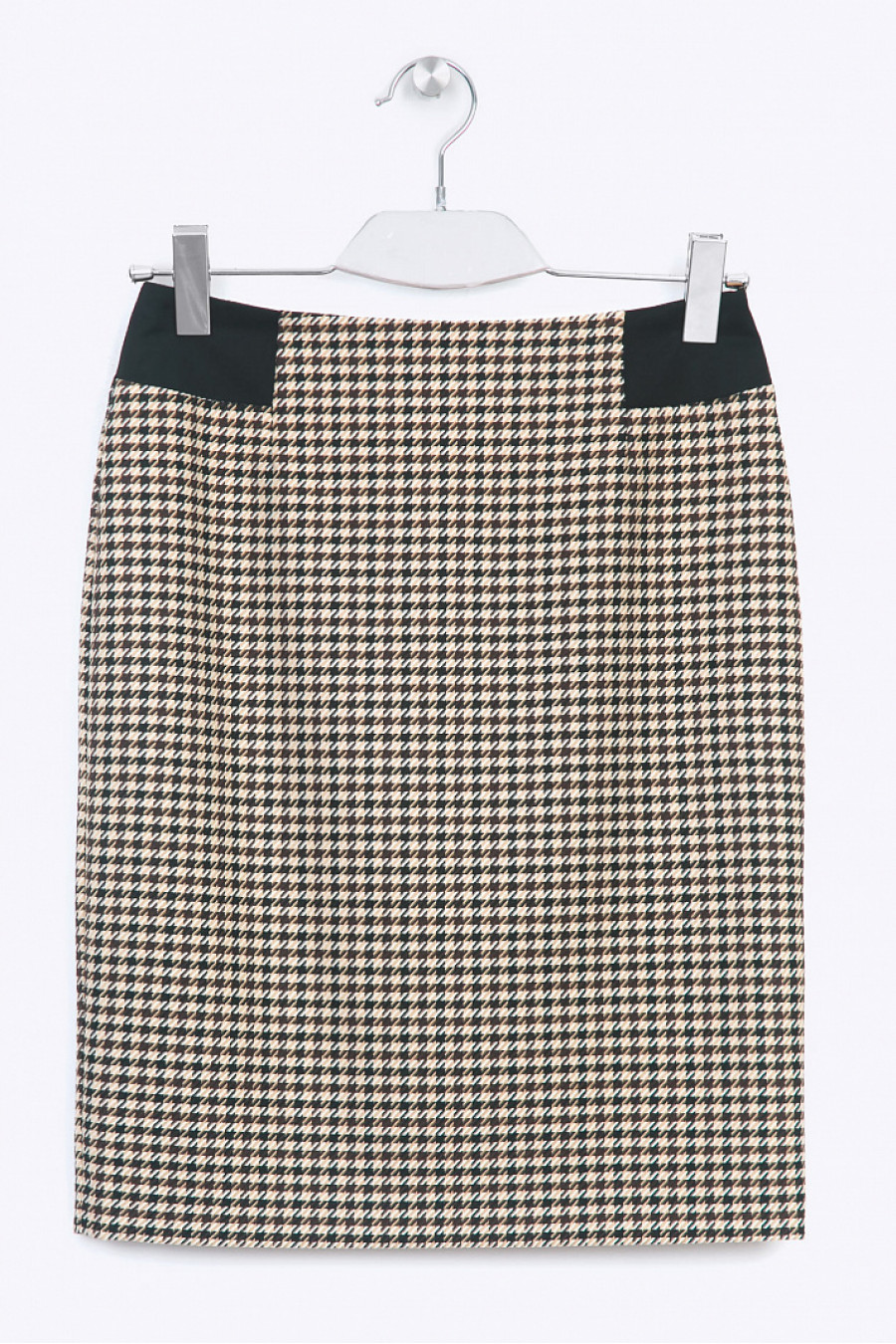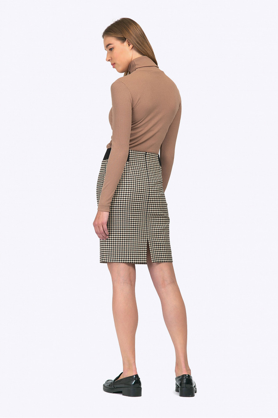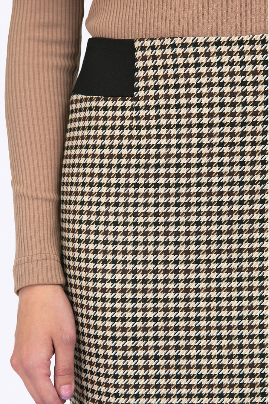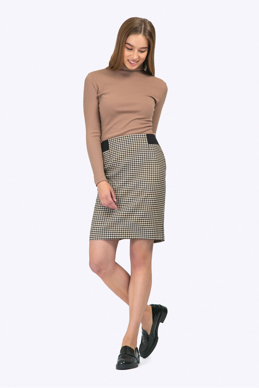 Практичная и стильная демисезонная юбка в благородную черно-бело-коричневую клеточку - отличный выбор для создания элегантного рабочего повседневного образа (с пастельным джемпером или водолазкой - как на фото) или выразительного городского (с классическим черным полу-пальто). Прямой классический силуэт, эстетичные декоративные вставки на поясе, удобная длина чуть выше колена - сделают эту модель любимым предметом гардероба. Универсальная юбка будет отлично смотреться в комплекте с вещами любых теплых оттенков. Мягкая плотная ткань с большим содержанием вискозы защитит от офисных сквозняков. Есть подкладка.Рост фотомодели 175 см. Образ на фото дополнен ML556-virgo .