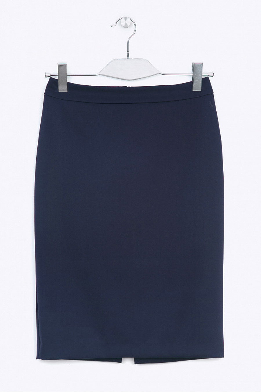 Классическая тёмно-синяя юбка-карандаш для строгих деловых образов. Модель с высокой посадкой по линии талии, плотно облегает бёдра. Имеет притачной пояс, на спинке расположены застёжка «молния» и разрез. Образ на фото дополнен B2324-flanne l. Рост фотомодели 176 см.<-p>