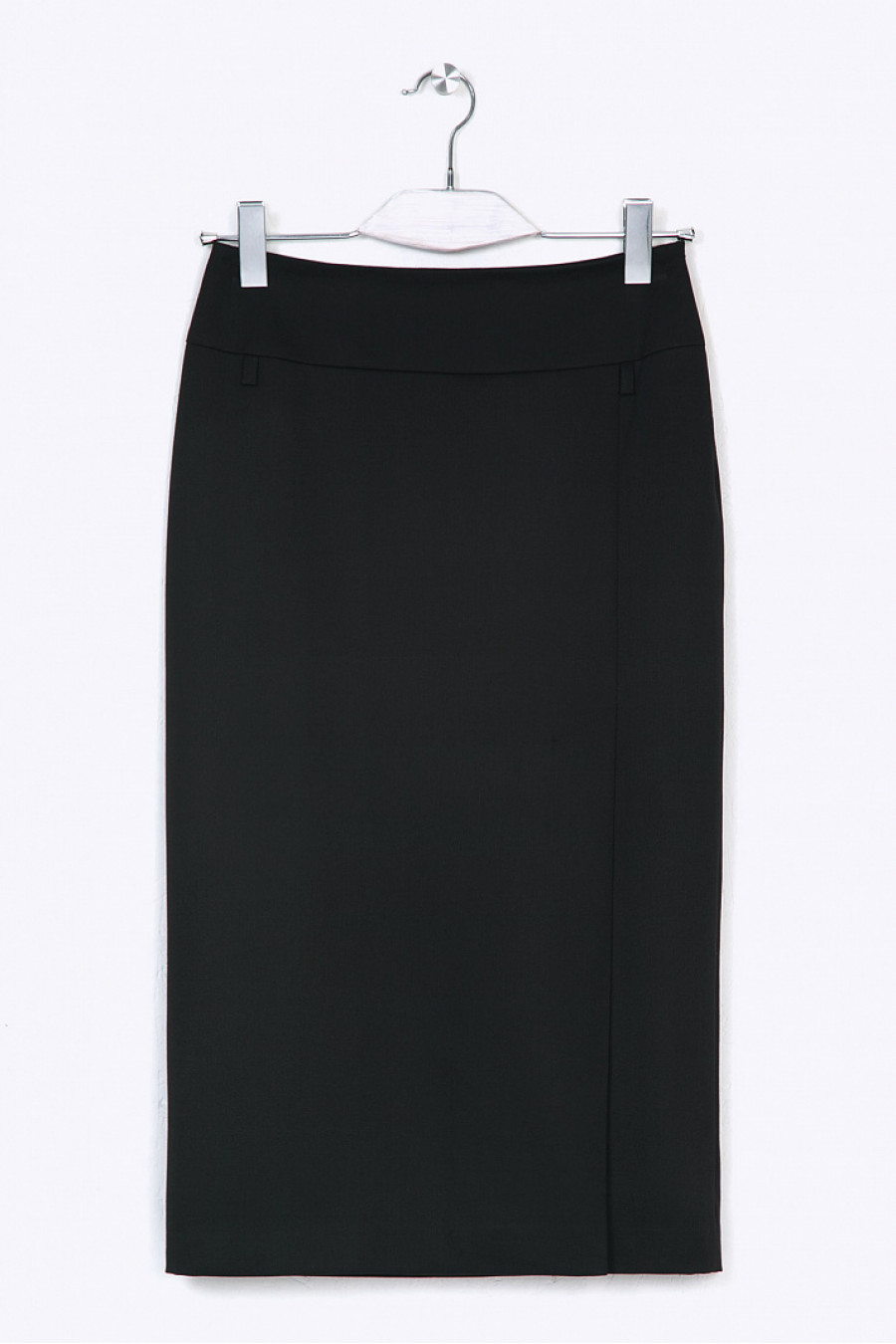 Юбка-миди черного цветана широкой кокетке с подкладкой. Модель прямого кроя, основным акцентом является расположенная спереди высокаяшлица, имитирующая запах. Юбка дополненанебольшими декоративными шлёвками,сбоку расположена застёжка молния. Рост фотомодели 177 см.