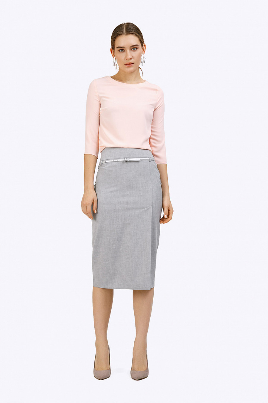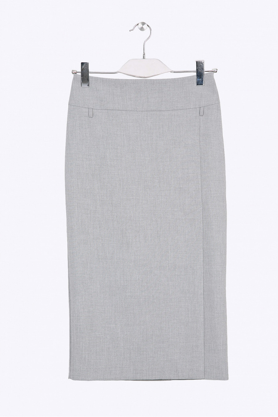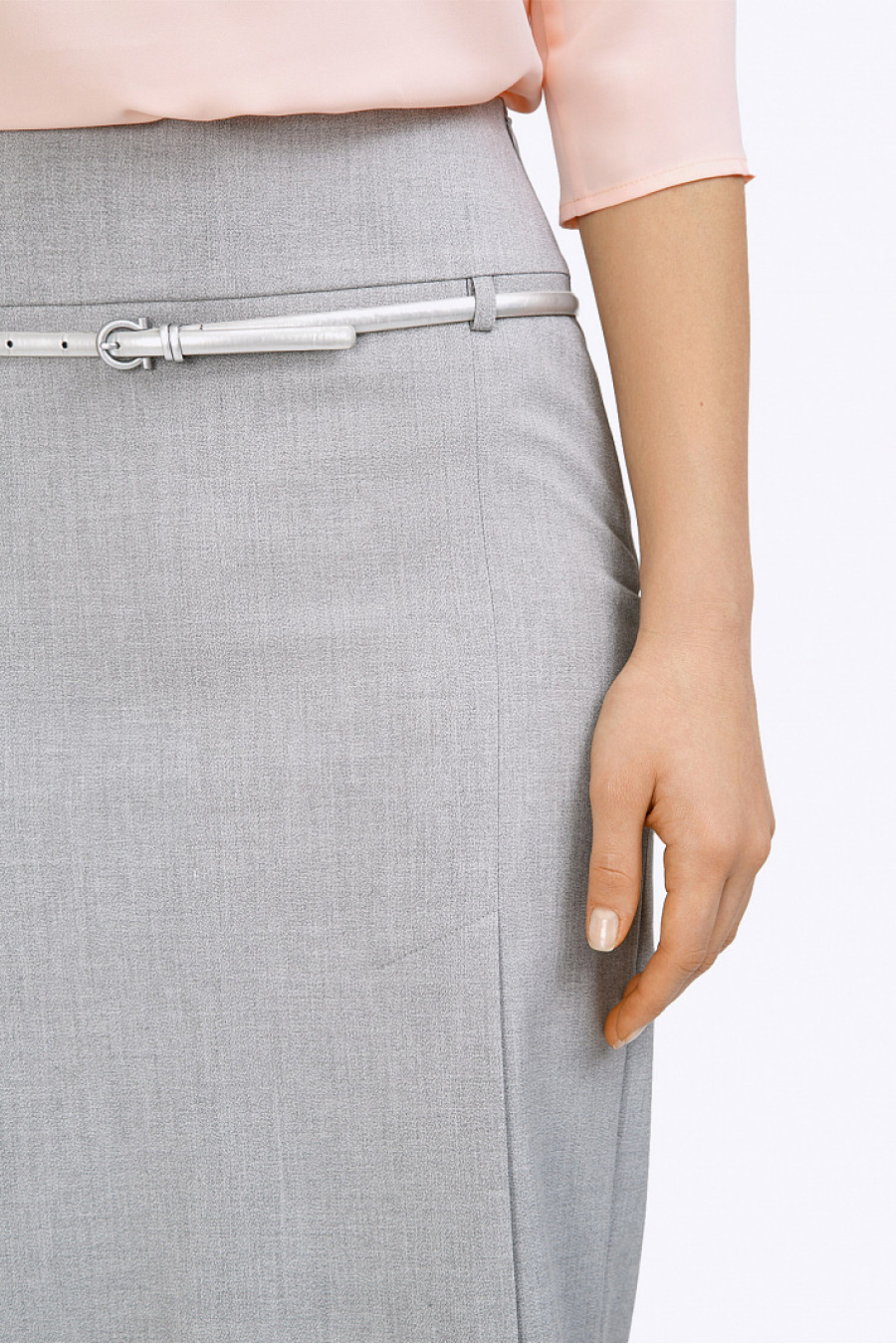 Юбка-миди серого цвета на широкой кокетке с подкладкой. Модель прямого кроя, основным акцентом является расположенная спереди высокаяшлица, имитирующая запах. Юбка дополненанебольшими декоративными шлёвками,сбоку расположена застёжка молния. Ремень не входит в комплект. Рост фотомодели 177см.