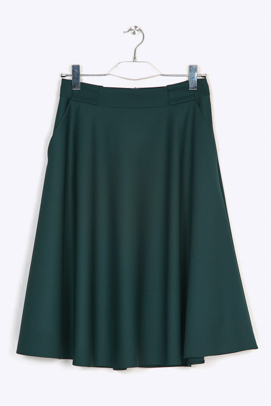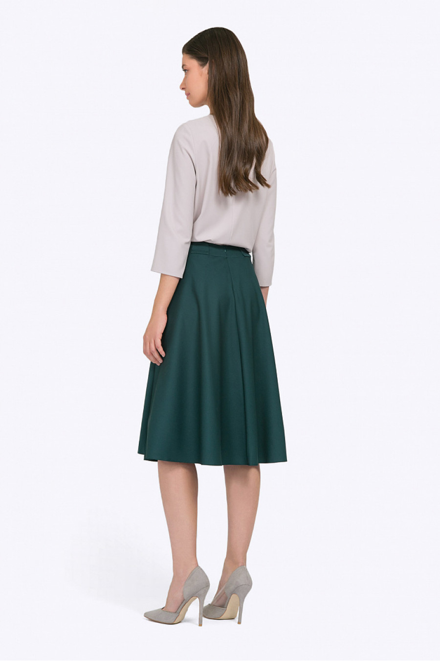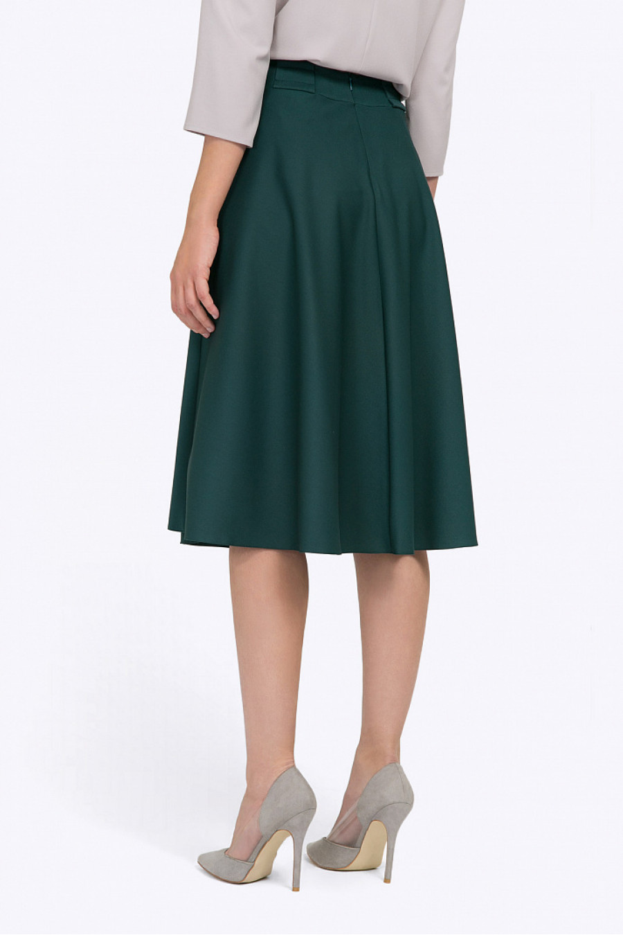 Юбка полусолнце для создания городских и деловыхобразов. Модель средней длины, пояс декорирован широкими шлёвками, линия талии