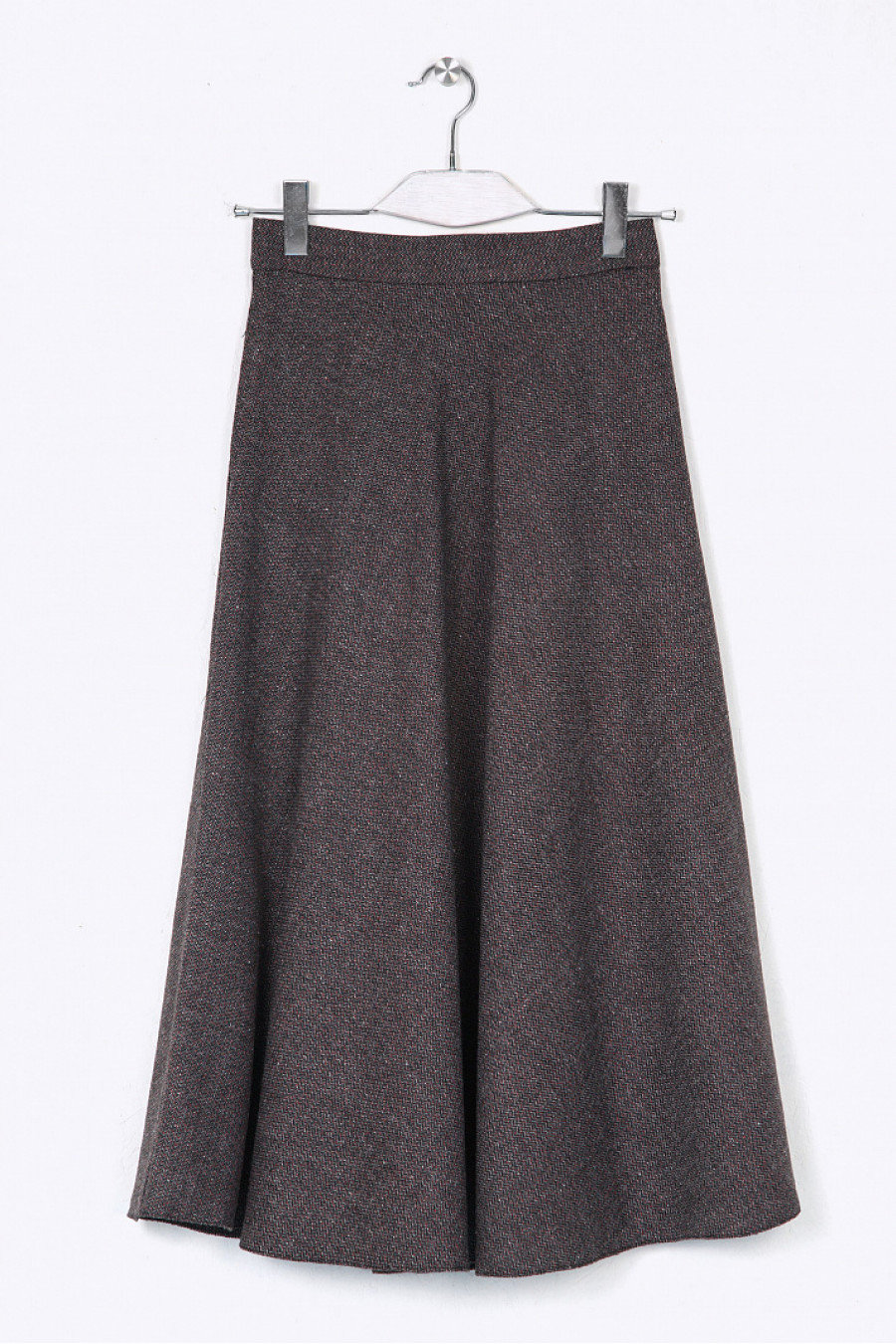 стиле. Выполнена из фактурной тёмно-серой полушерсти с мелким вкраплением краснойнити. Модель средней длины, с боковыми карманами, сзади имеется застёжка «молния». Образ на фото дополнен блузкой B2285-russet . Рост фотомодели 177 см.