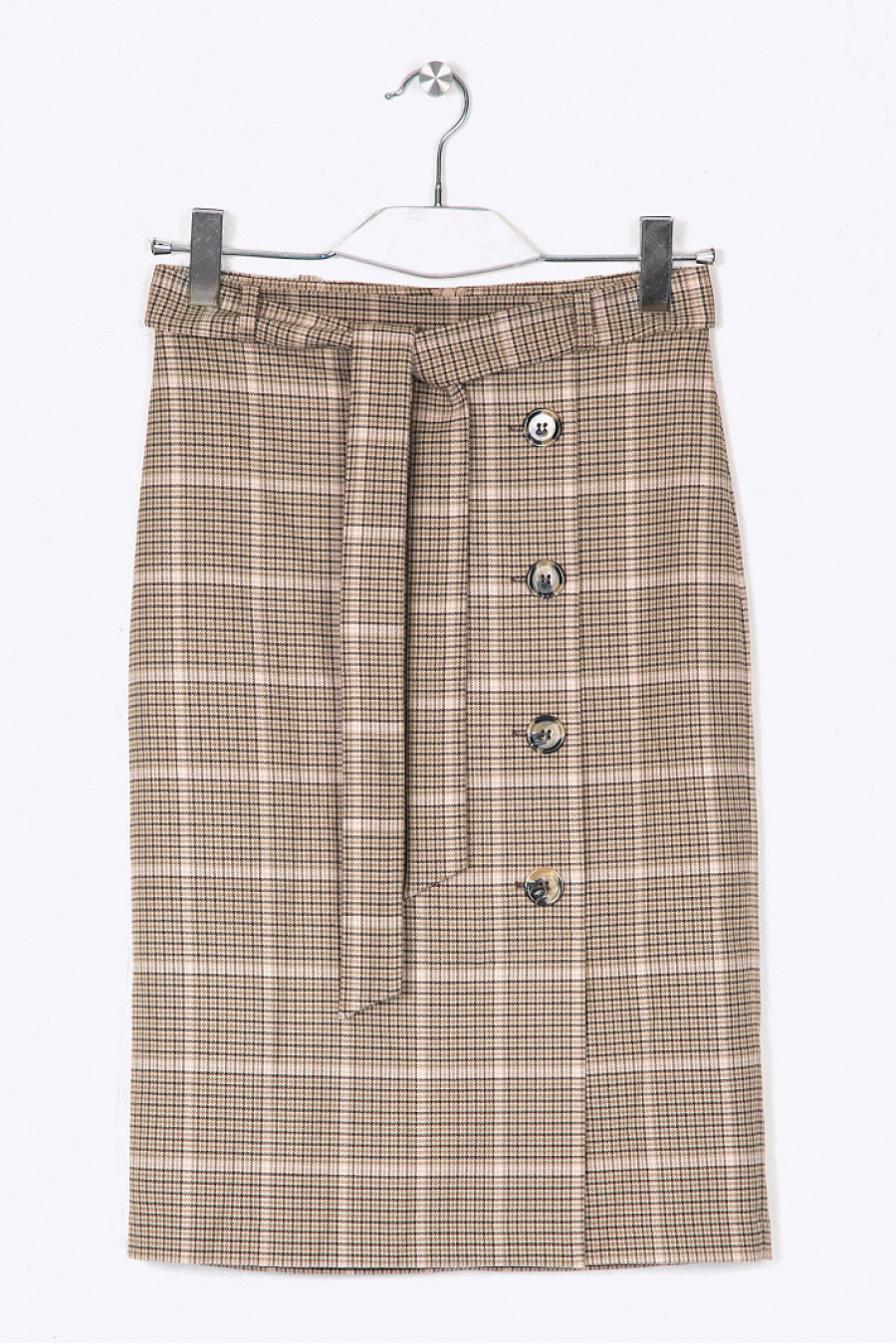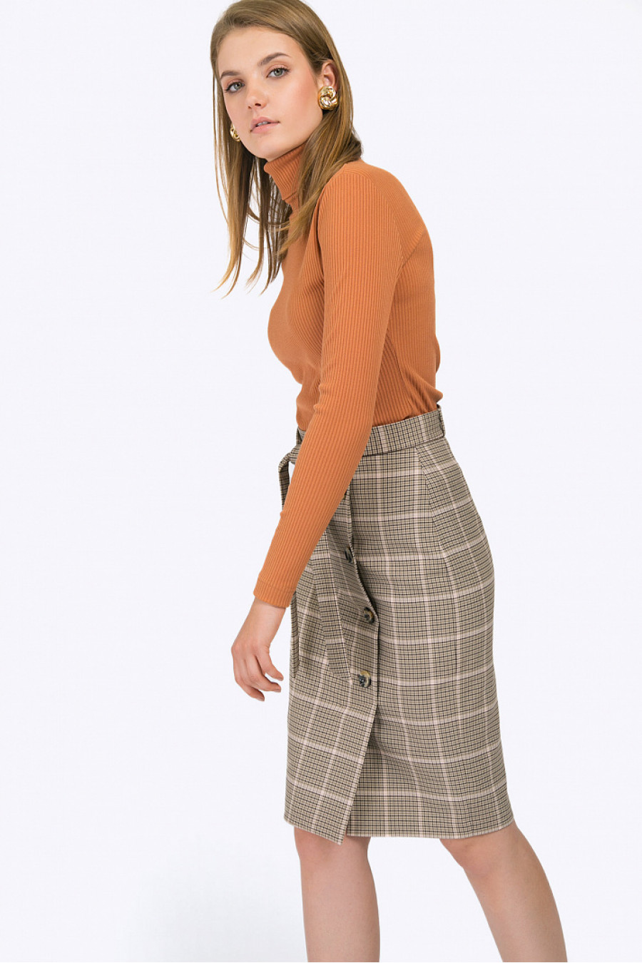 Юбка в клетку тёплой спокойной цветовой гаммы в стиле смарт-кэжуал.