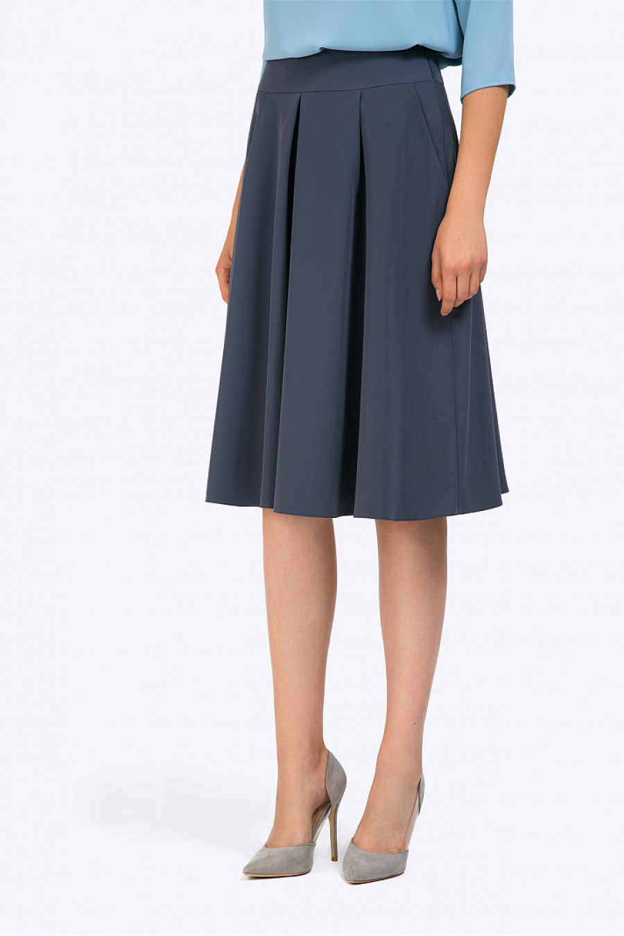 Тёмно-серая юбка-миди А-силуэта на широкой кокетке для созданияженственных образов в городском и неформальном деловом стилях. Модель имеетплавные мягкие линии, образованные глубокими встречными складками, оптическиувеличивающими объём бёдер. Дополнением служат боковые карманы, застёжка«молния» расположена в боковом шве. Есть подкладка.Образ на фото дополнен блузкой B2354-largina . Рост фотомодели 177 см.