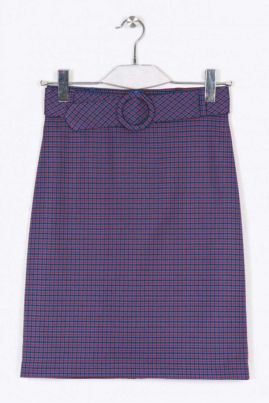 Короткая юбка с широким поясом в городском стиле. Выполнена из фактурной ткани с принтом «пье-де-пуль» в полифоничной цветовой гамме холодных оттенков. Модель прямого покроя, линия талии акцентирована жёстким поясом с крупной, обтянутой тканью пряжкой в форме кольца. На спинке застёжка «молния» и небольшой разрез. Образ на фото дополнен блузкой B2285-mauve . Рост фотомодели 174 см.